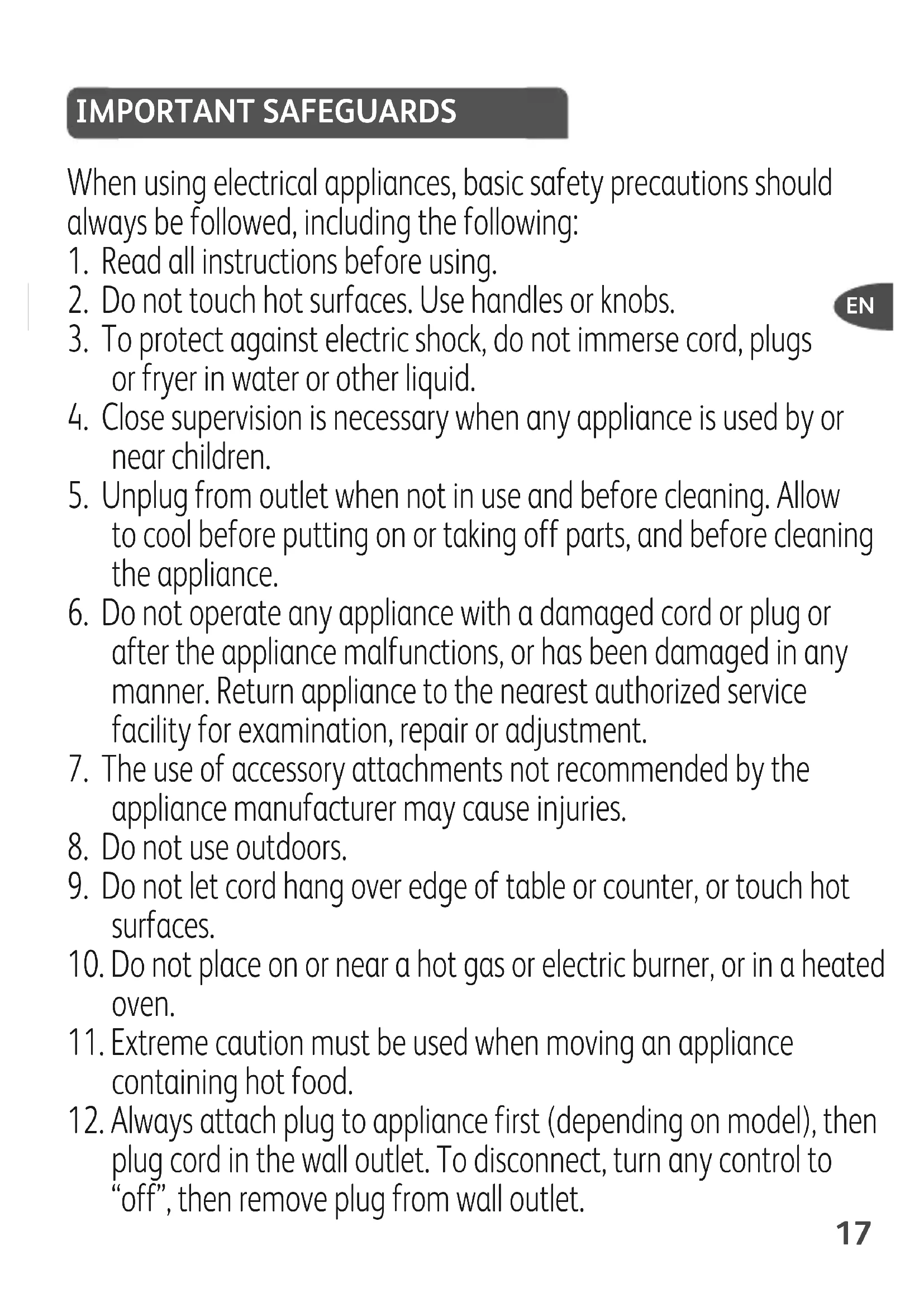 ACTIFRY FRESEN 1520005066_1520005066 20/02/17 16:26 Page14When using electrical appliances, basic safety precautions should always be followed, including the following: