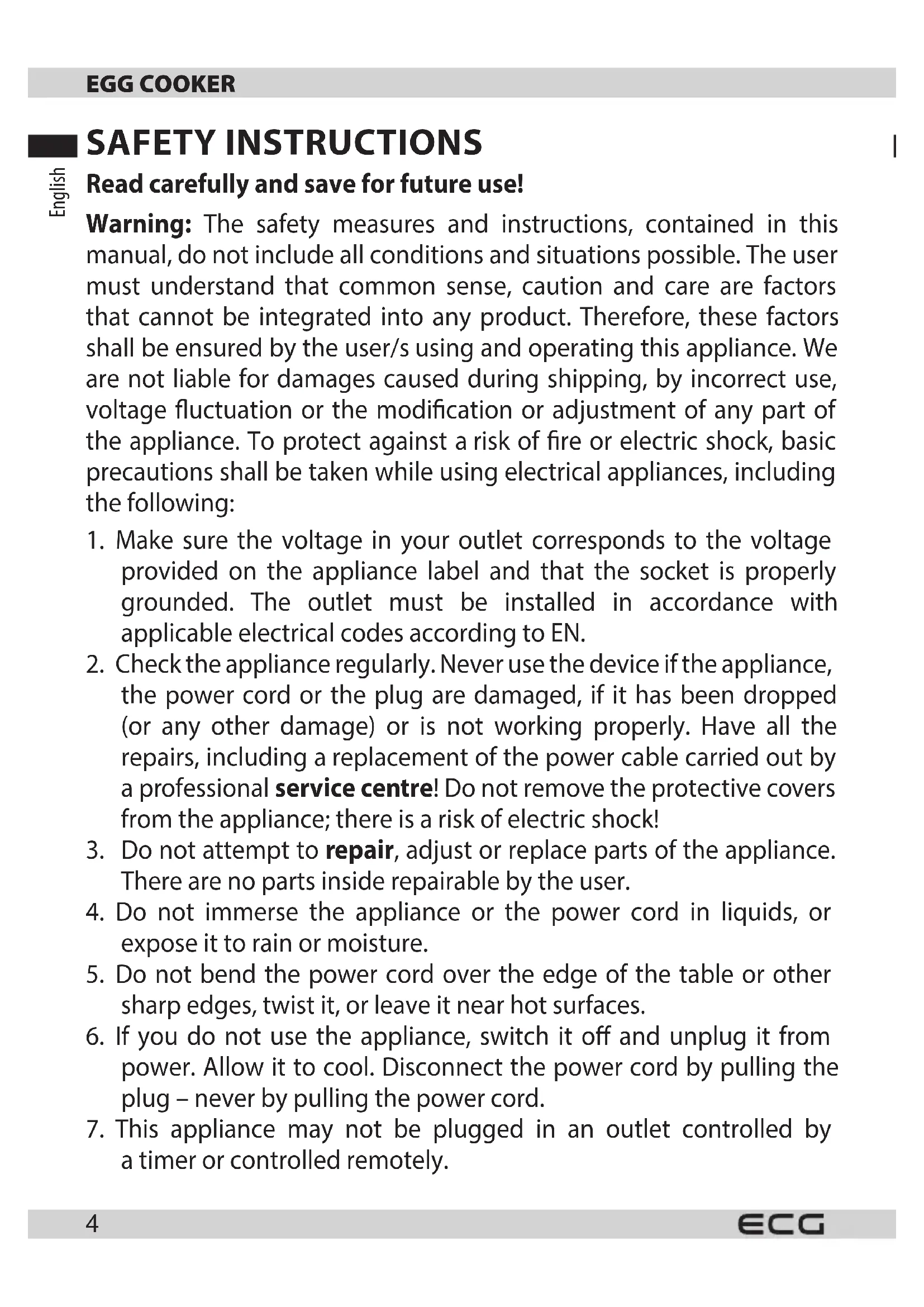 EGG COOKER SAFETY INSTRUCTIONS Read carefully and save for future use!