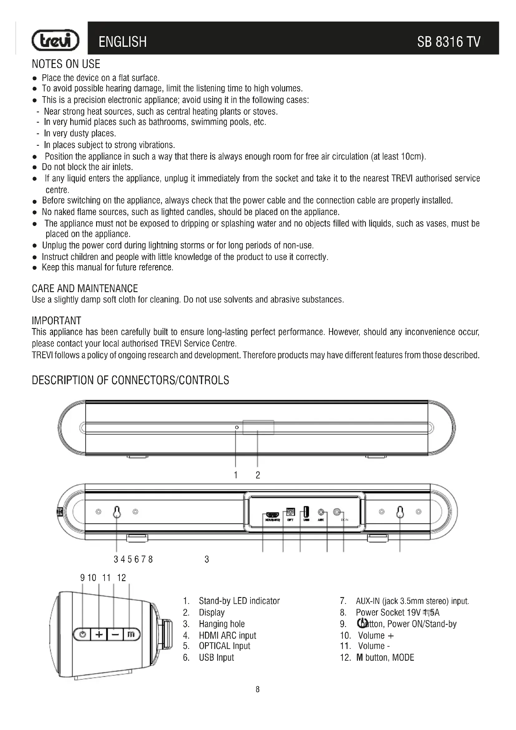 SB 8316 TV - Soundbar Trevi - Free user manual and instructions