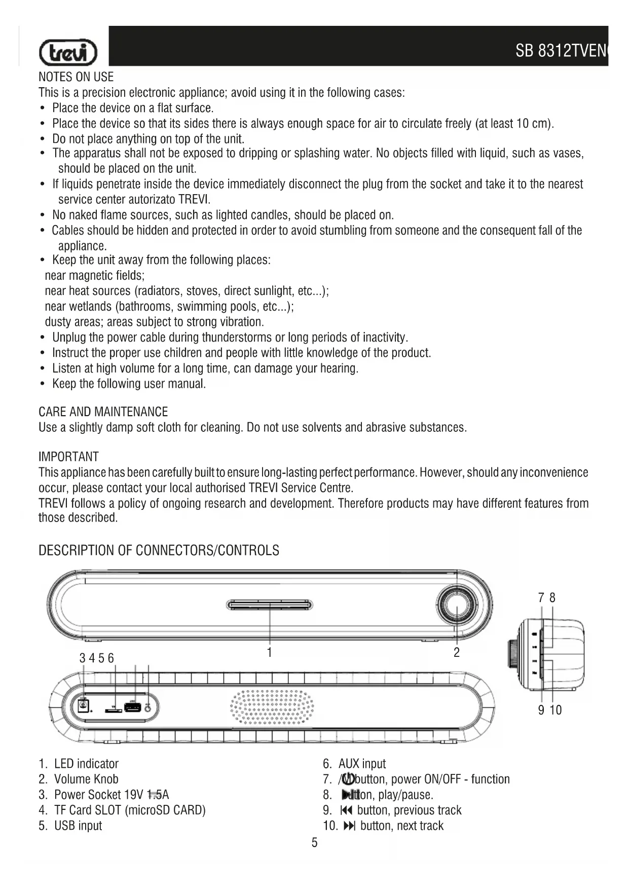 USER MANUAL SB 8312 TV Trevi