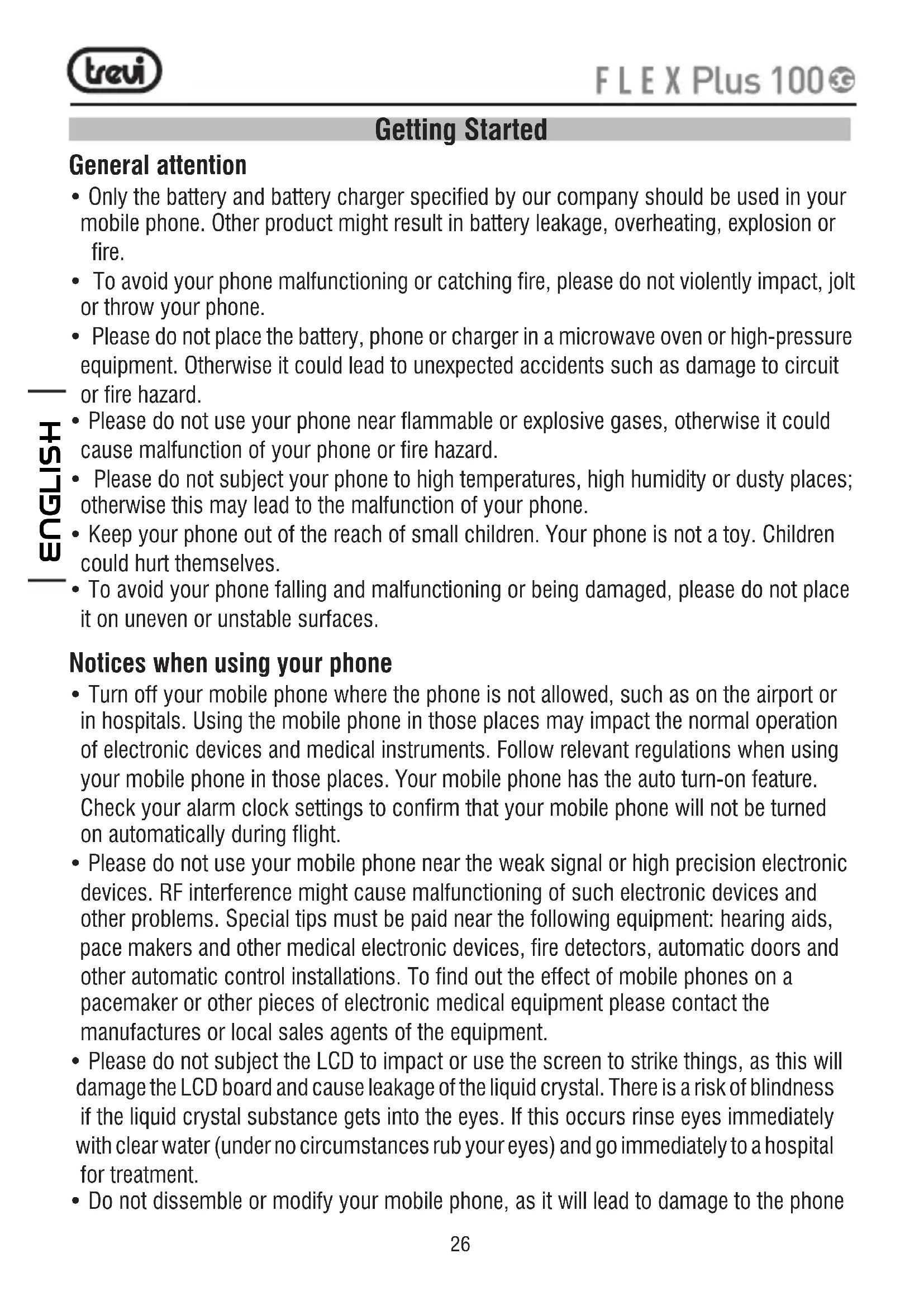 - Do not dissemble or modify your mobile phone, as it will lead to damage to the phone ENGLISH27 such as battery leakage or circuitry failure.