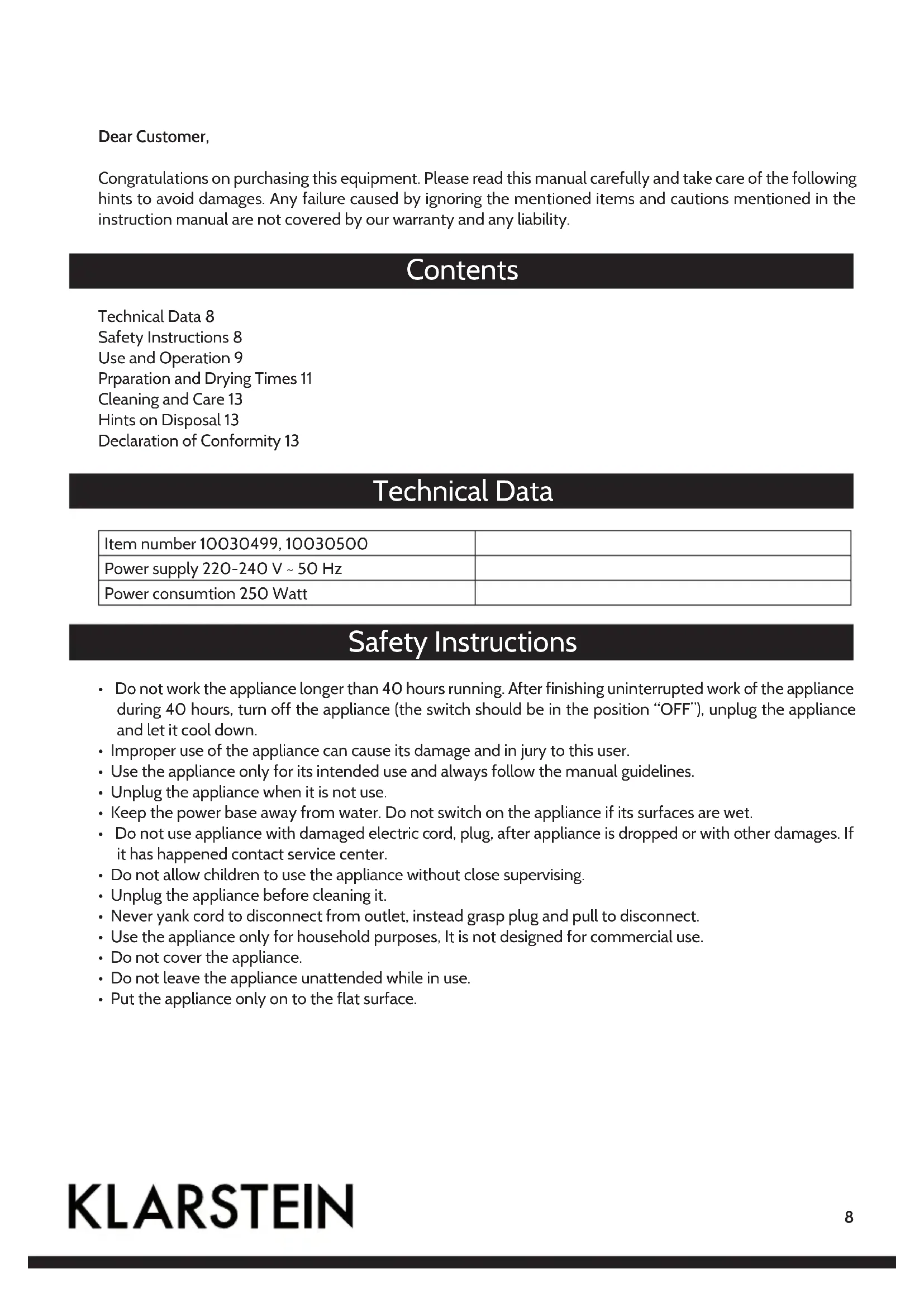 - Put the appliance only on to the flat surface.9 Use and Operation Before first Use