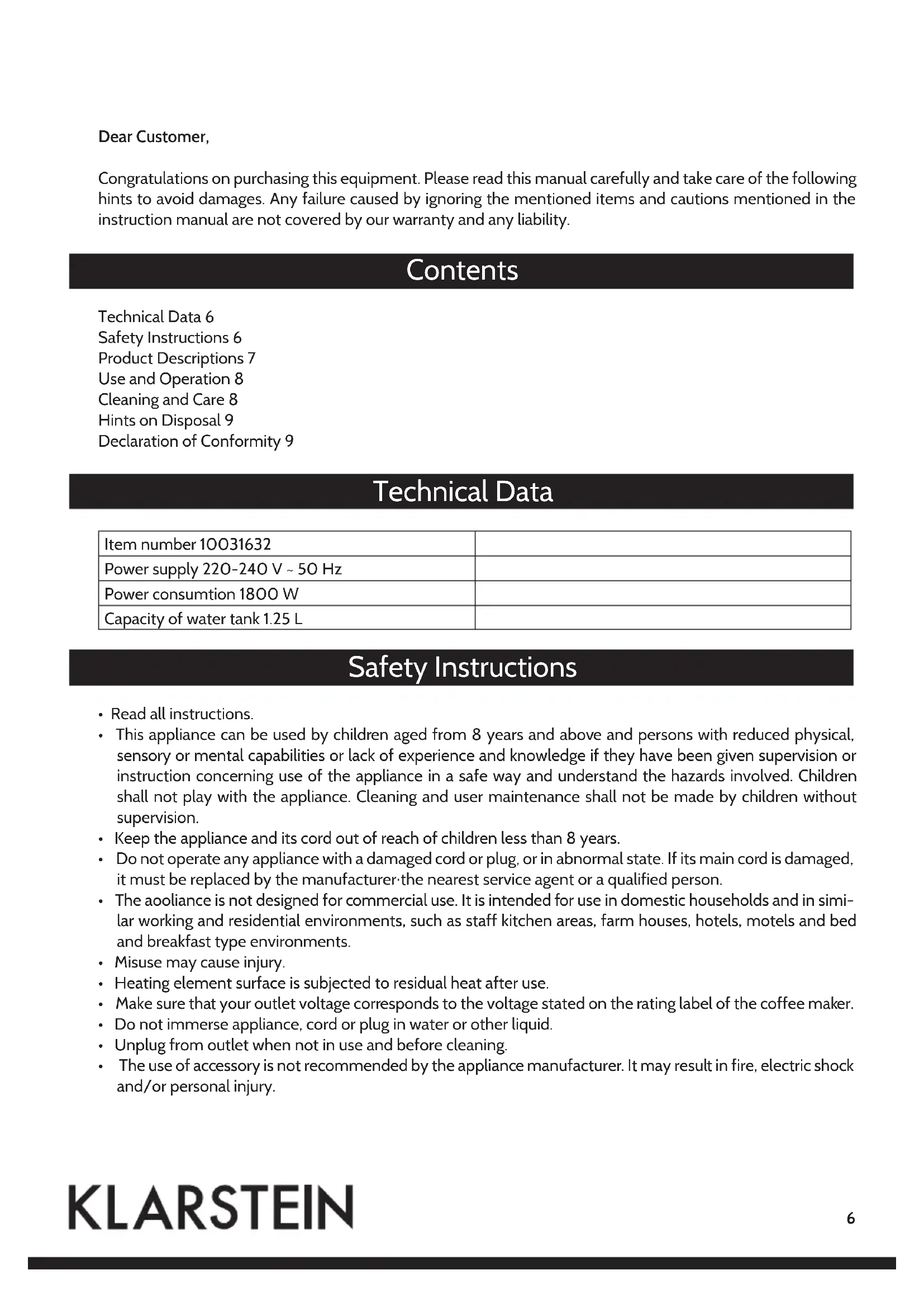 Download the instructions for your Coffee machine in PDF format for free! Find your manual Soulmate - Klarstein and take your electronic device back in hand. On this page are published all the documents necessary for the use of your device. Soulmate by Klarstein.