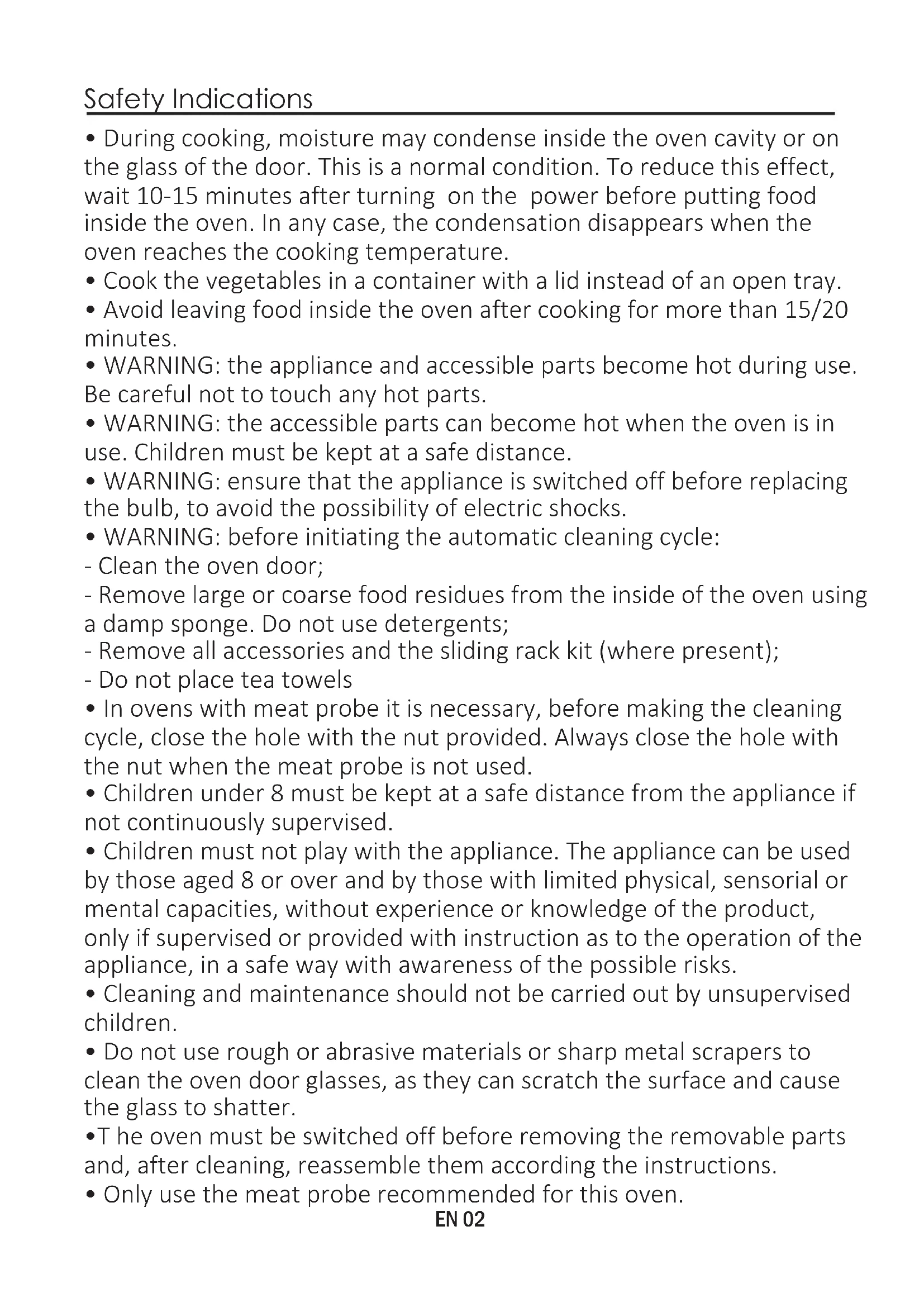 - Only use the meat probe recommended for this oven. EN 02•Do not use a steam cleaner for cleaning operations.