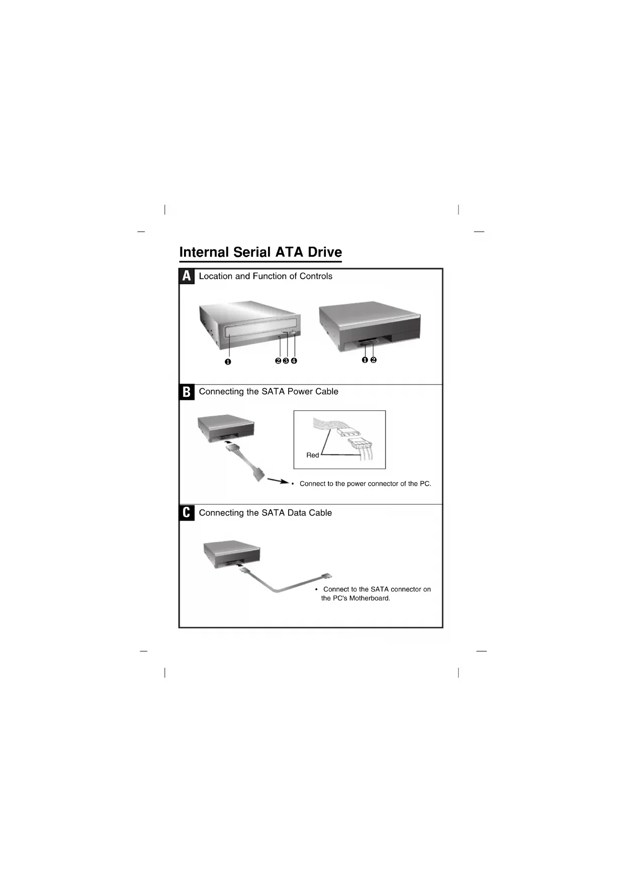 - Connect to the power connector of the PC. Red Connecting the SATA Power Cable Connecting the SATA Data Cable