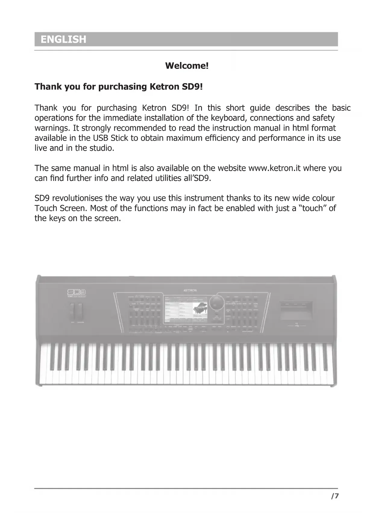 USER MANUAL SD9 KETRON