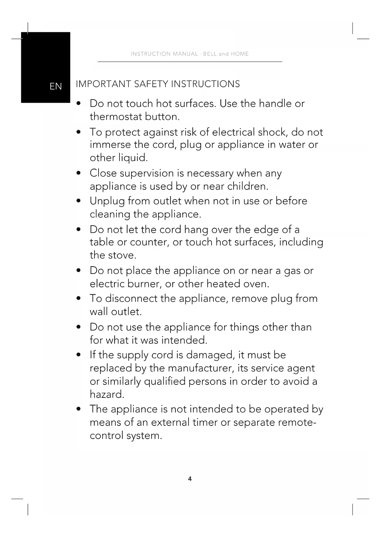 - Unplug from outlet when not in use or before cleaning the appliance.