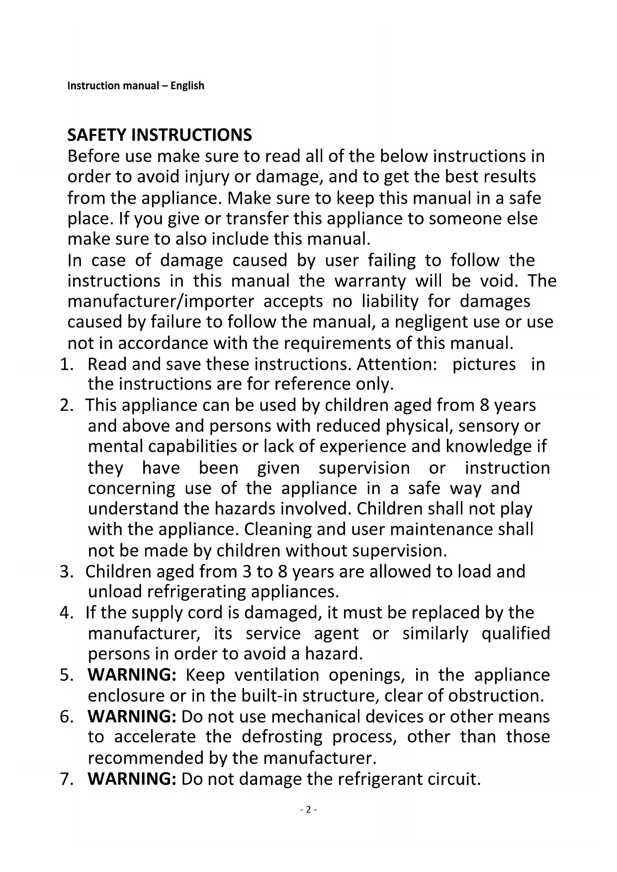 2. This appliance can be used by children aged from 8 years