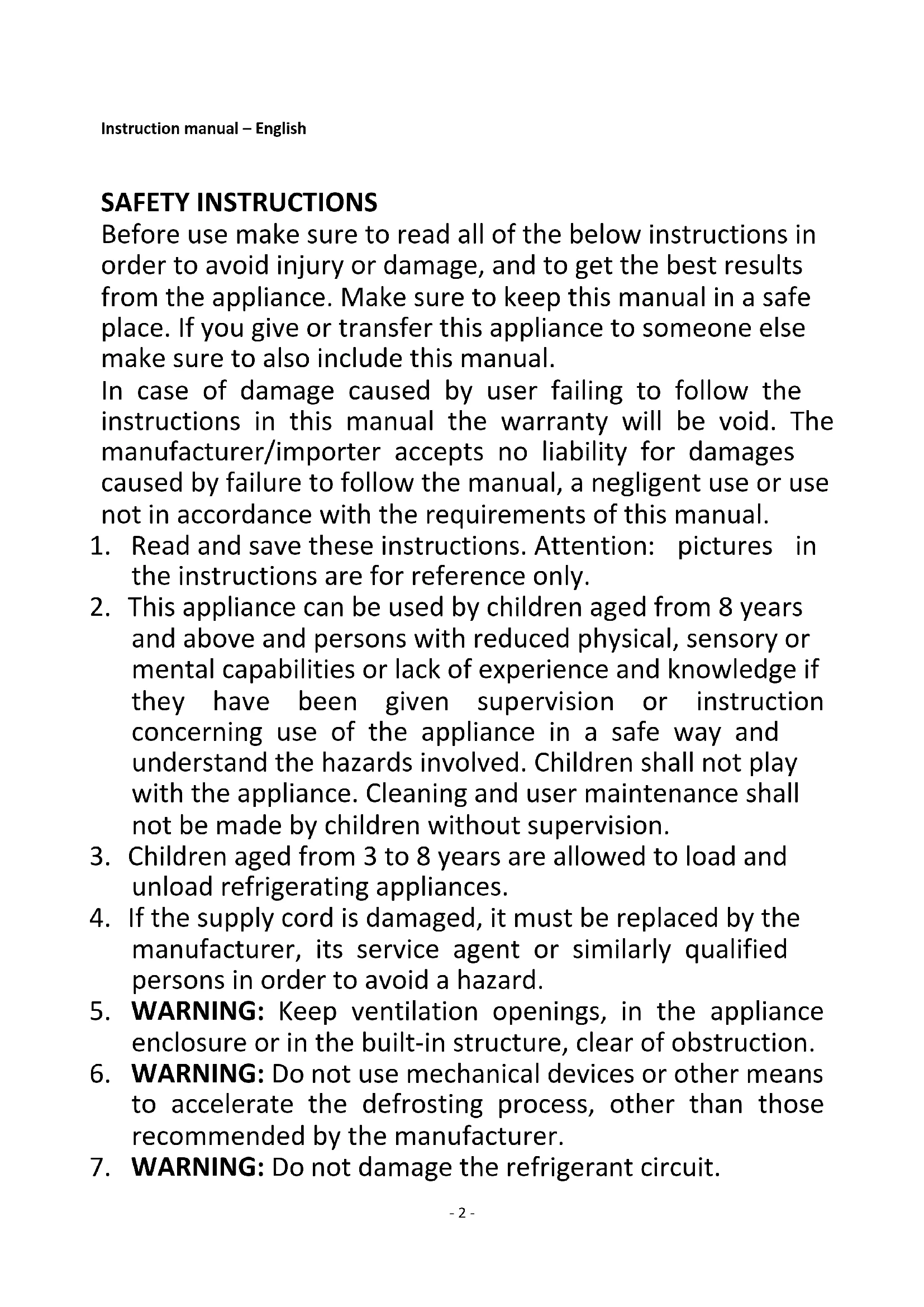 2. This appliance can be used by children aged from 8 years
