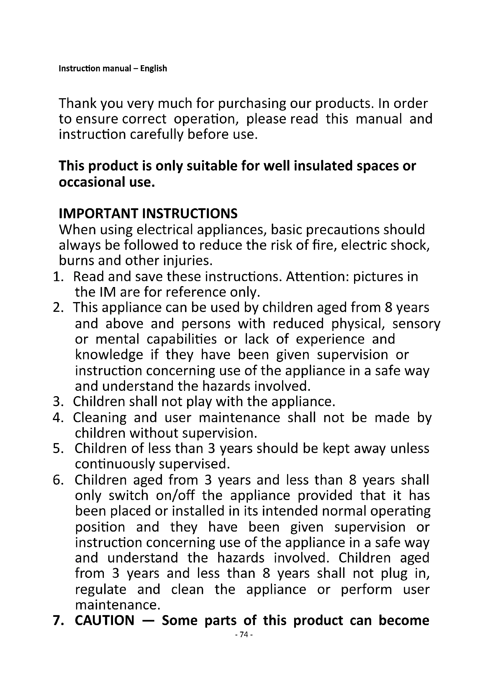 control the room temperature. Do not use this heater in small rooms when they are occupied by persons not capable of leaving the room on their own, unless constant supervision is provided.
