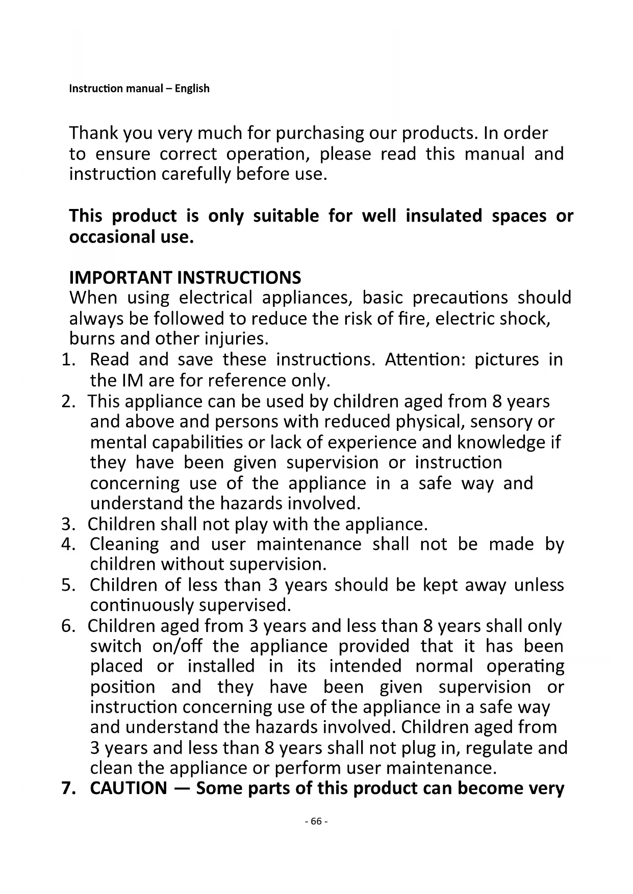 28. Do not use this appliance to dry or heat clothing, shoes,