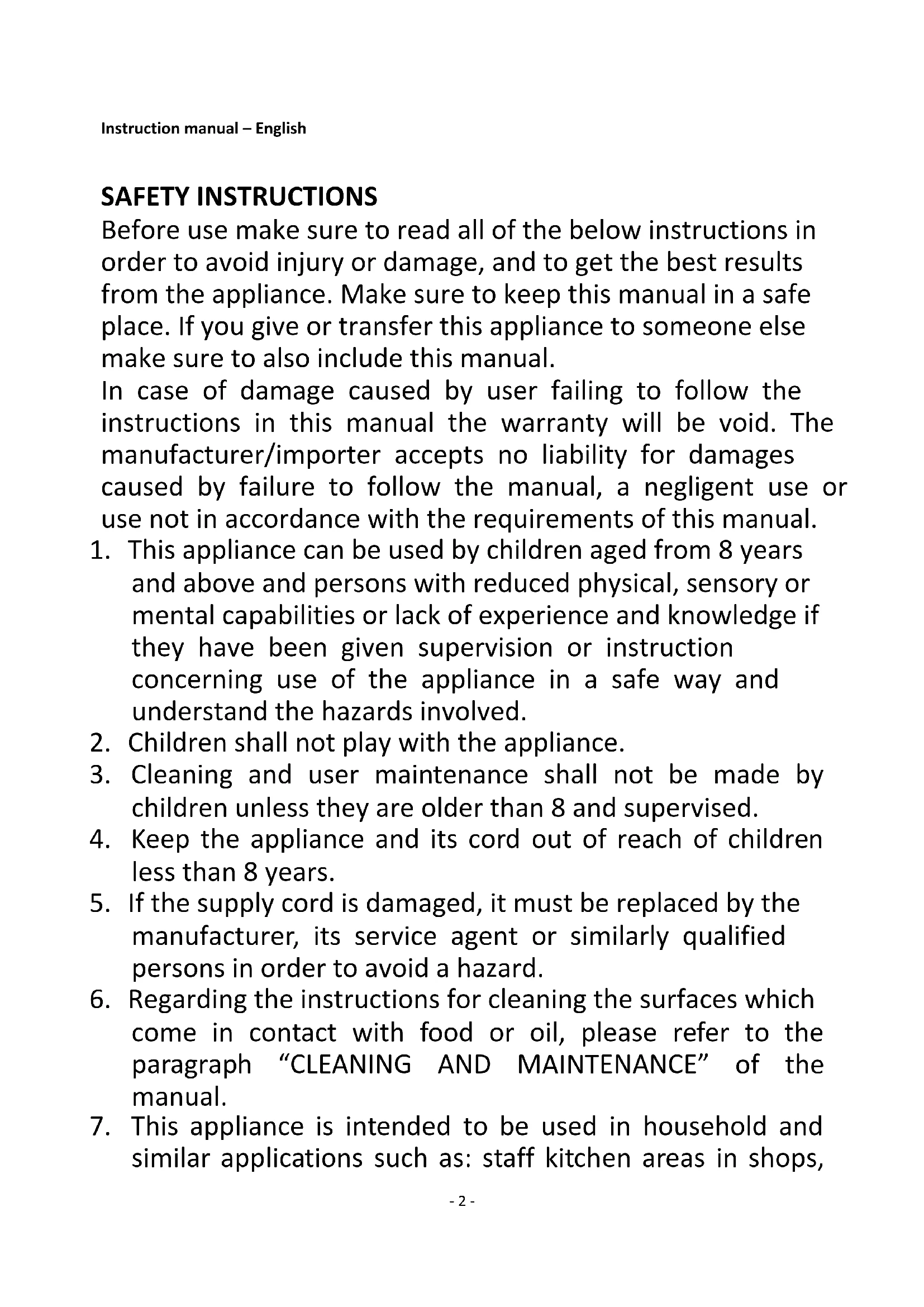 2. Children shall not play with the appliance.