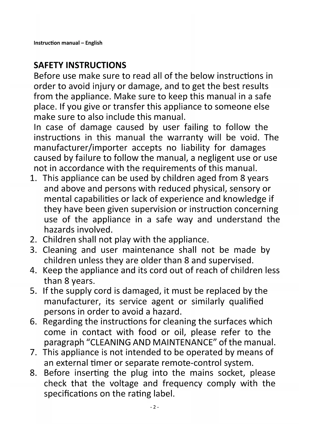 2. Children shall not play with the appliance.