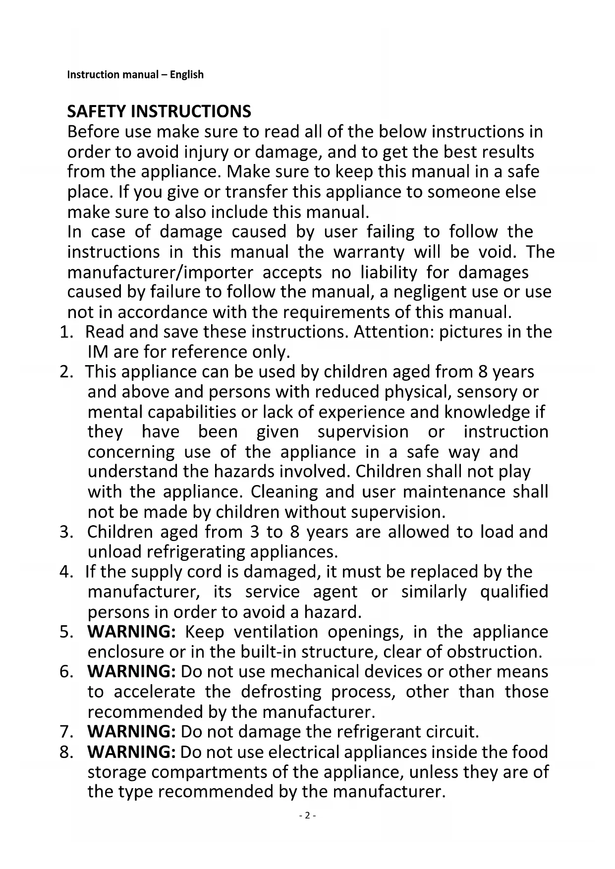 2. This appliance can be used by children aged from 8 years