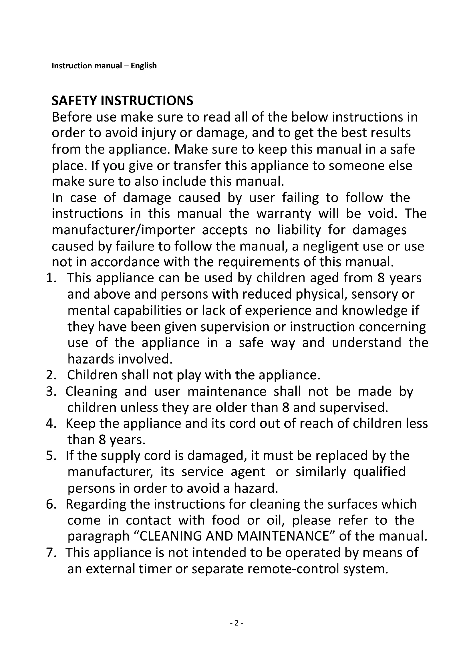 Before delivery our devices are subjected to rigorous quality control. If, despite all care, damage has occurred during production or transportation, please return the device to your dealer. In addition to statutory legal rights, the purchaser has an option to claim under the terms of the following guarantee: For the purchased device we provide 2 years guarantee, commencing from the day of sale. If you have a defective product, you can directly go back to the point of purchase. Defects which arise due to improper handling of the device and malfunctions due to interventions and repairs by third parties or the fitting of non-original parts are not covered by this guarantee. Always keep your receipt, without the receipt you can’t claim any form of warranty. Damage caused by not following the instruction manual, will lead to a void of warranty, if this results in consequential damages then we will not be liable. Neither can we hold responsible for material damage or personal injury caused by improper use if the instruction manual is not properly executed. Damage to accessories does not mean free replacement of the whole appliance. In such case please contact our service department. Broken glass or breakage of plastic parts is always subject to a charge. Defects to consumables or parts subjected to wearing, as well as cleaning, maintenance or the replacement of said parts are not covered by the warranty and are to be paid.