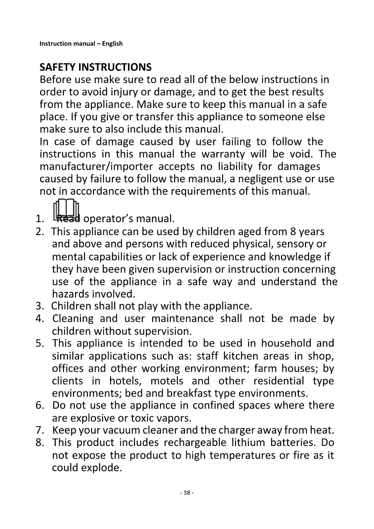 8. This product includes rechargeable lithium batteries. Do