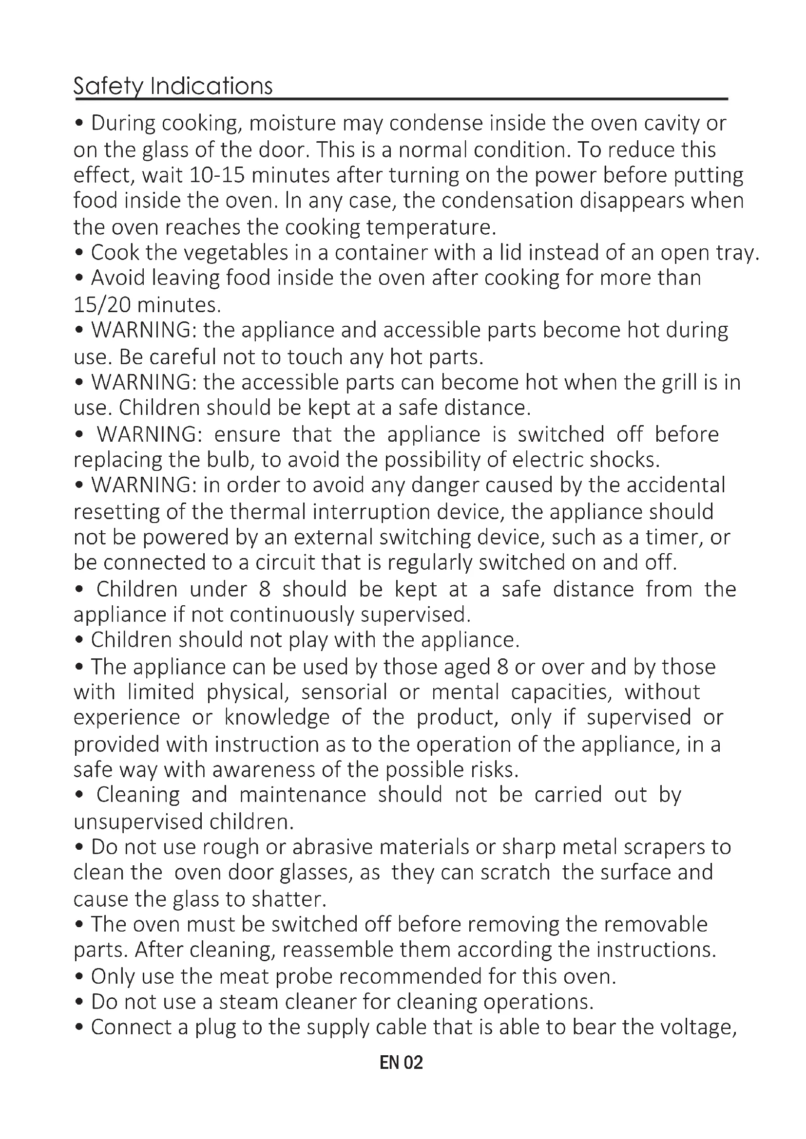 - Avoid leaving food inside the oven after cooking for more than 15/20 minutes.
