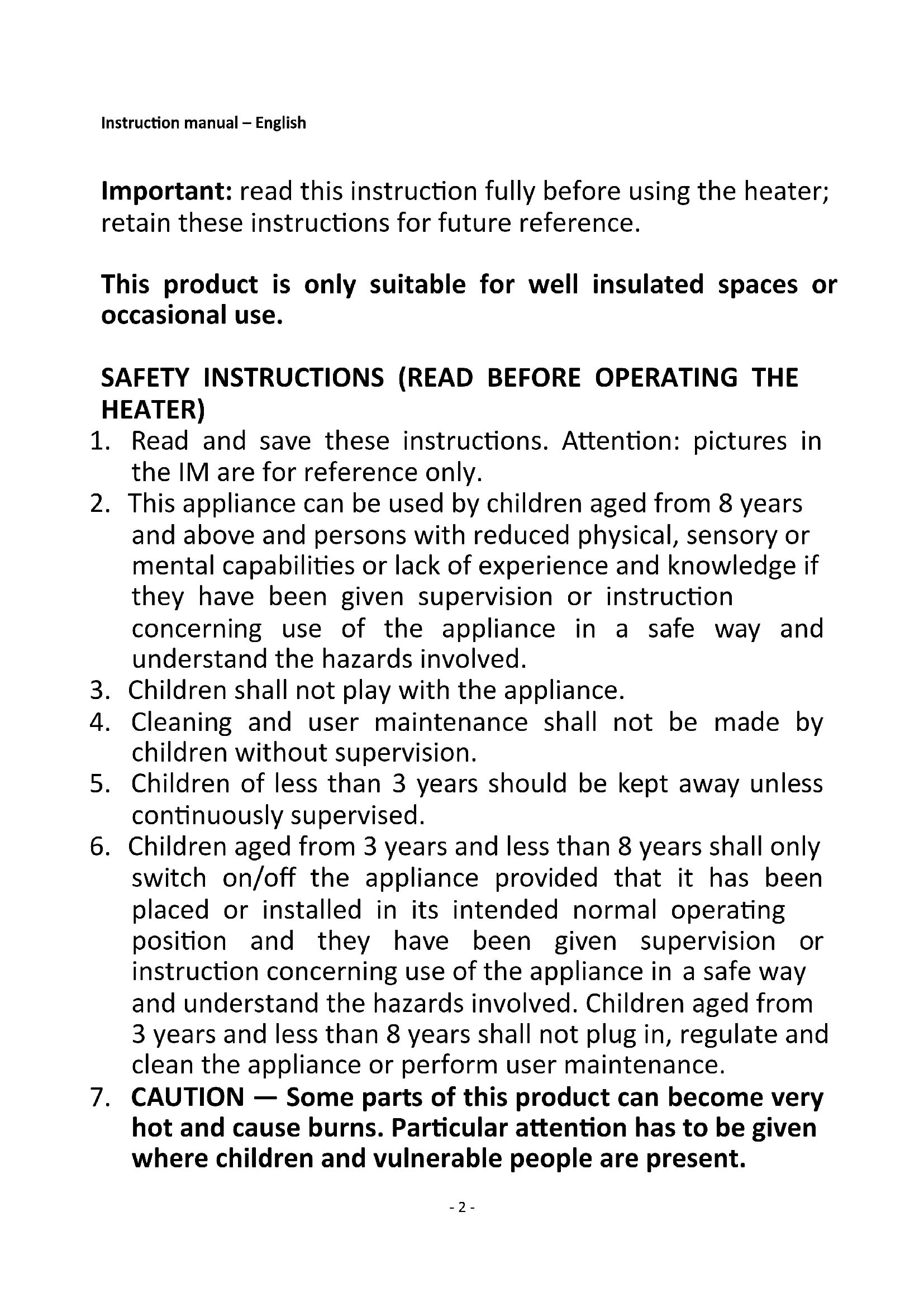 10. The heater is not intended for use in bathrooms, laundry
