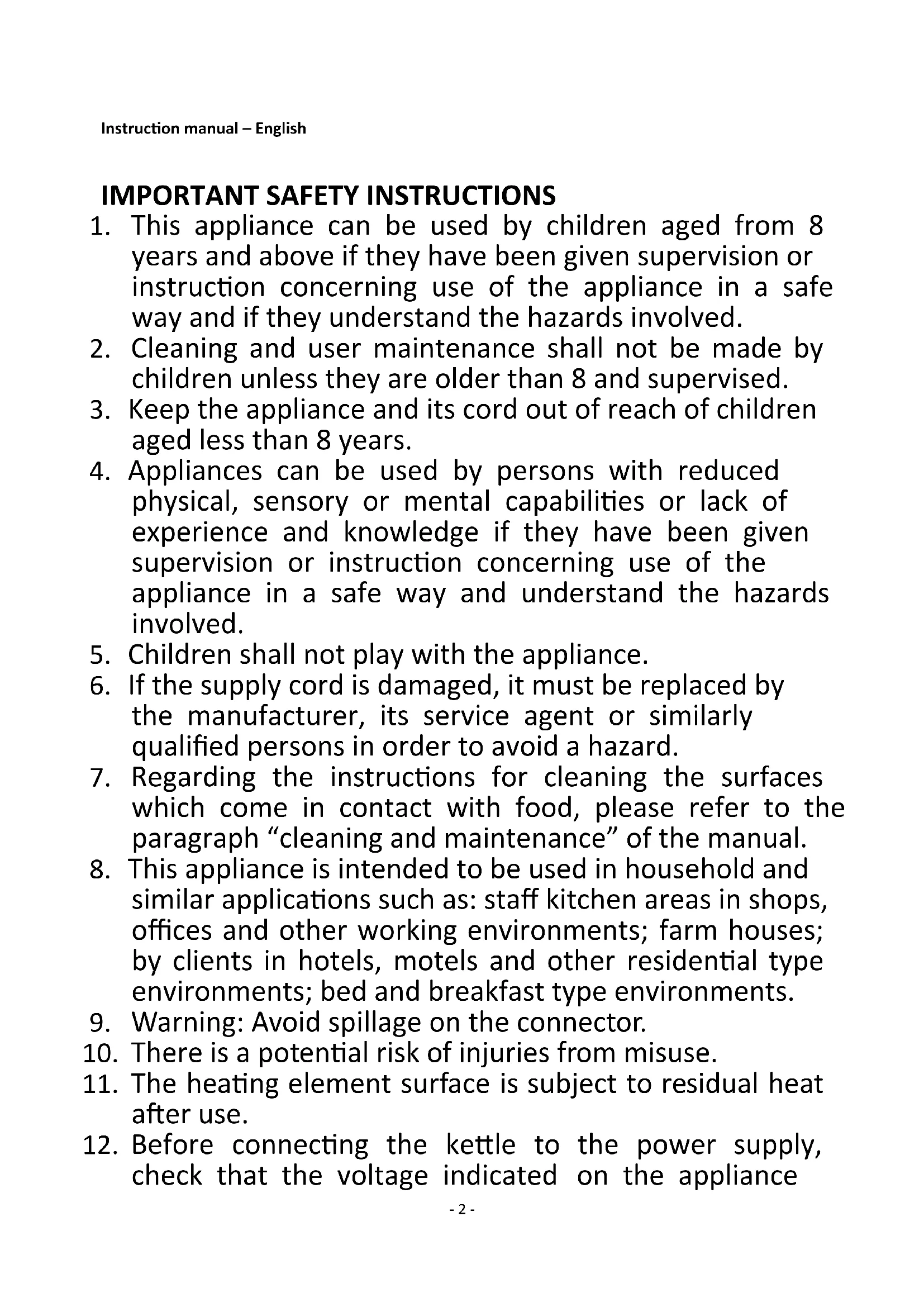 12. Before connecting the kettle to the power supply,