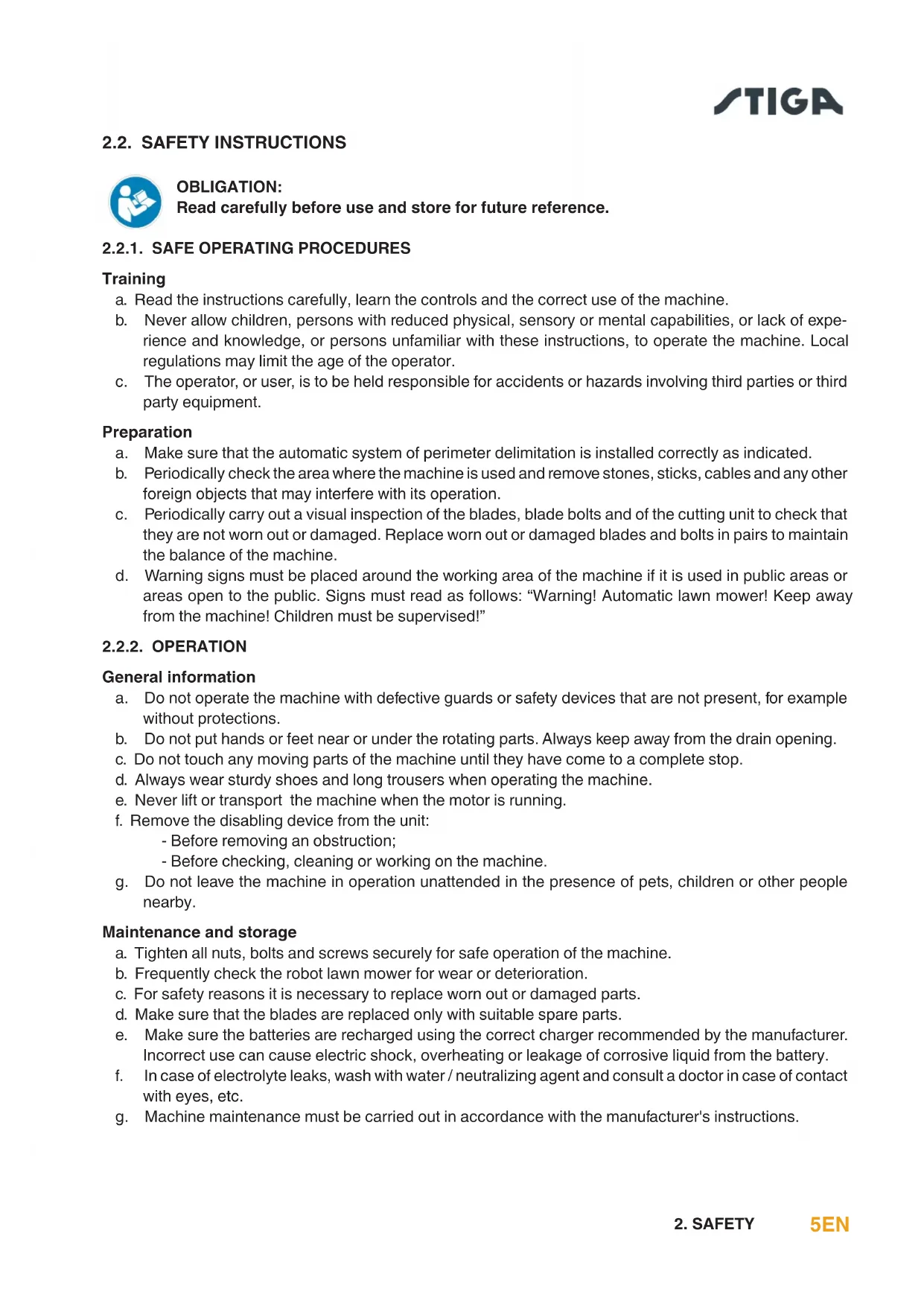 2.2. SAFETY INSTRUCTIONS OBLIGATION: Readcarefullybeforeuseandstoreforfuturereference.