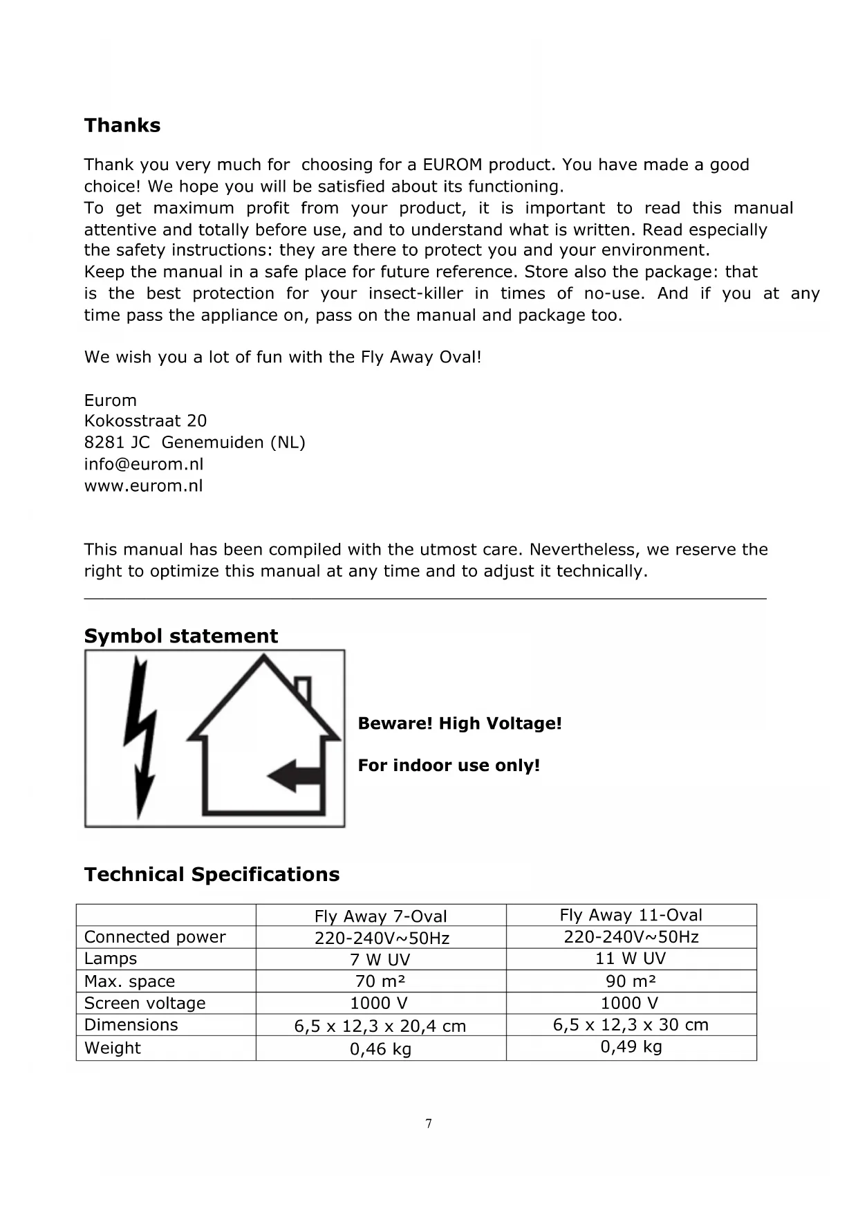 USER MANUAL Fly Away 11Oval Eurom