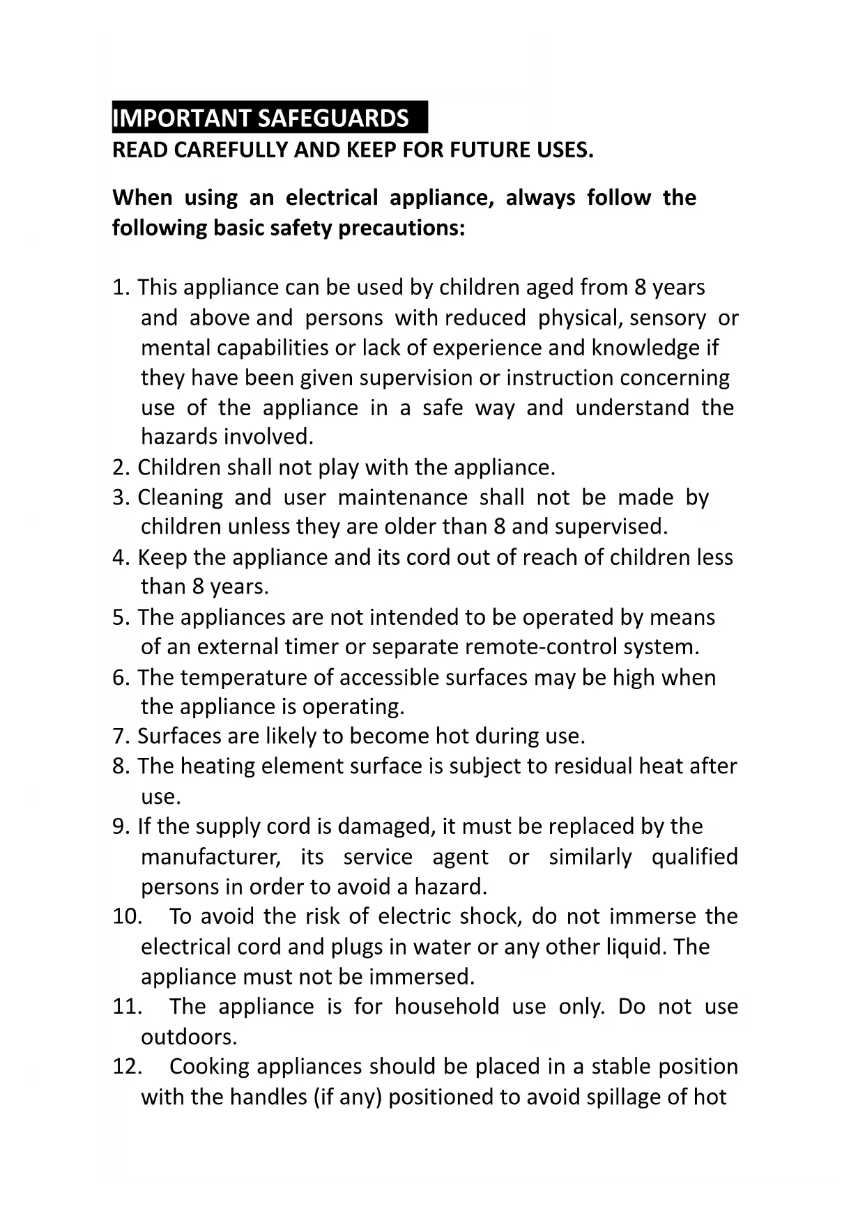 FranceIMPORTANT SAFEGUARDS READ CAREFULLY AND KEEP FOR FUTURE USES. When using an electrical appliance, always follow the following basic safety precautions: