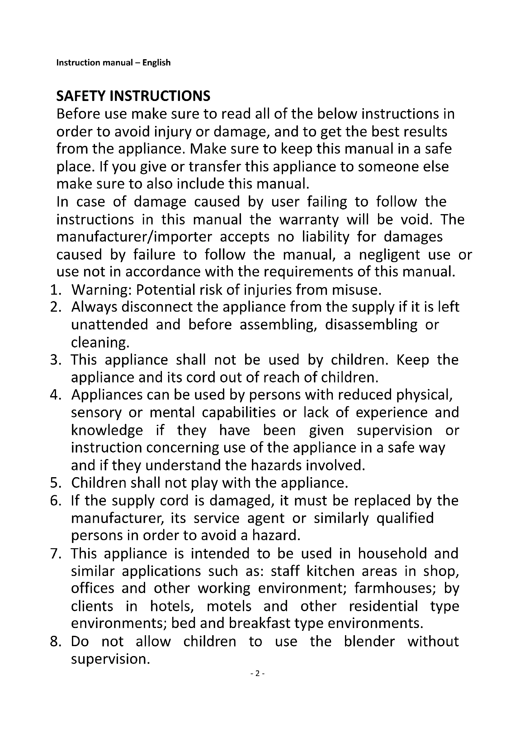 8. Do not allow children to use the blender without
