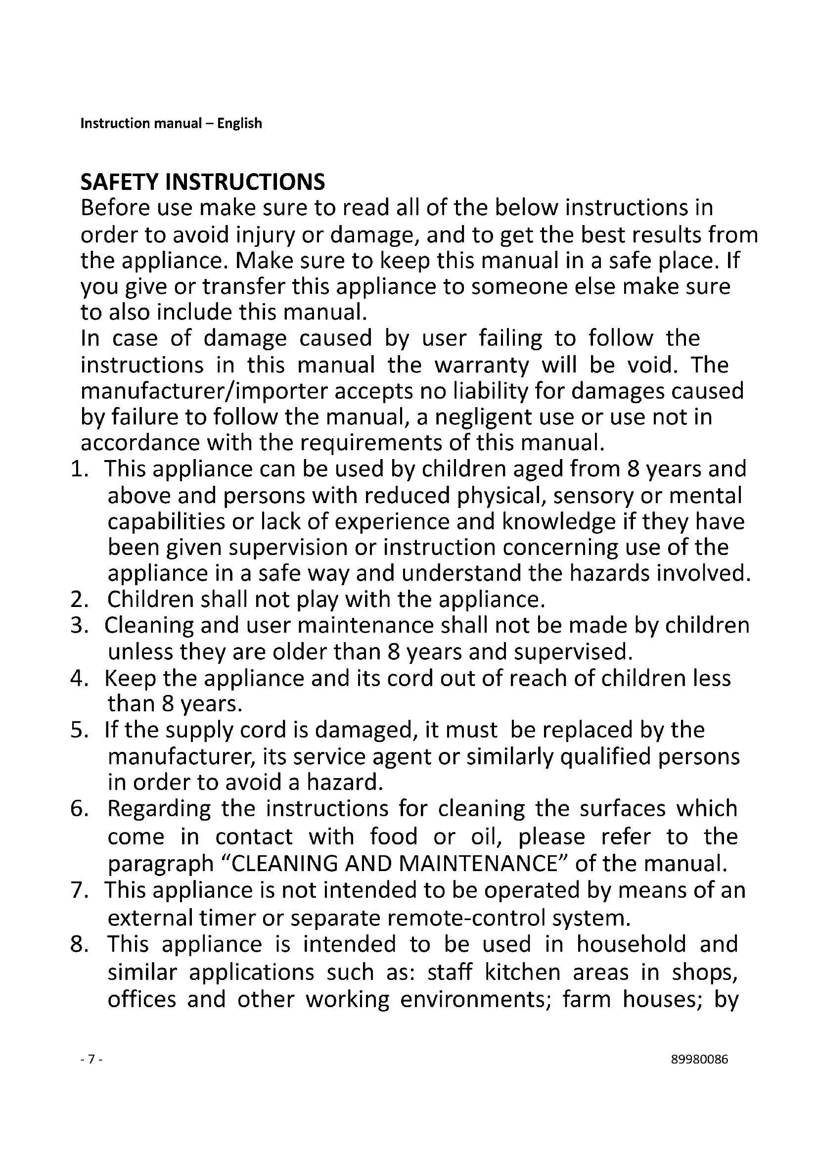 appliance manufacturer may cause injuries.- 9 - 89980086