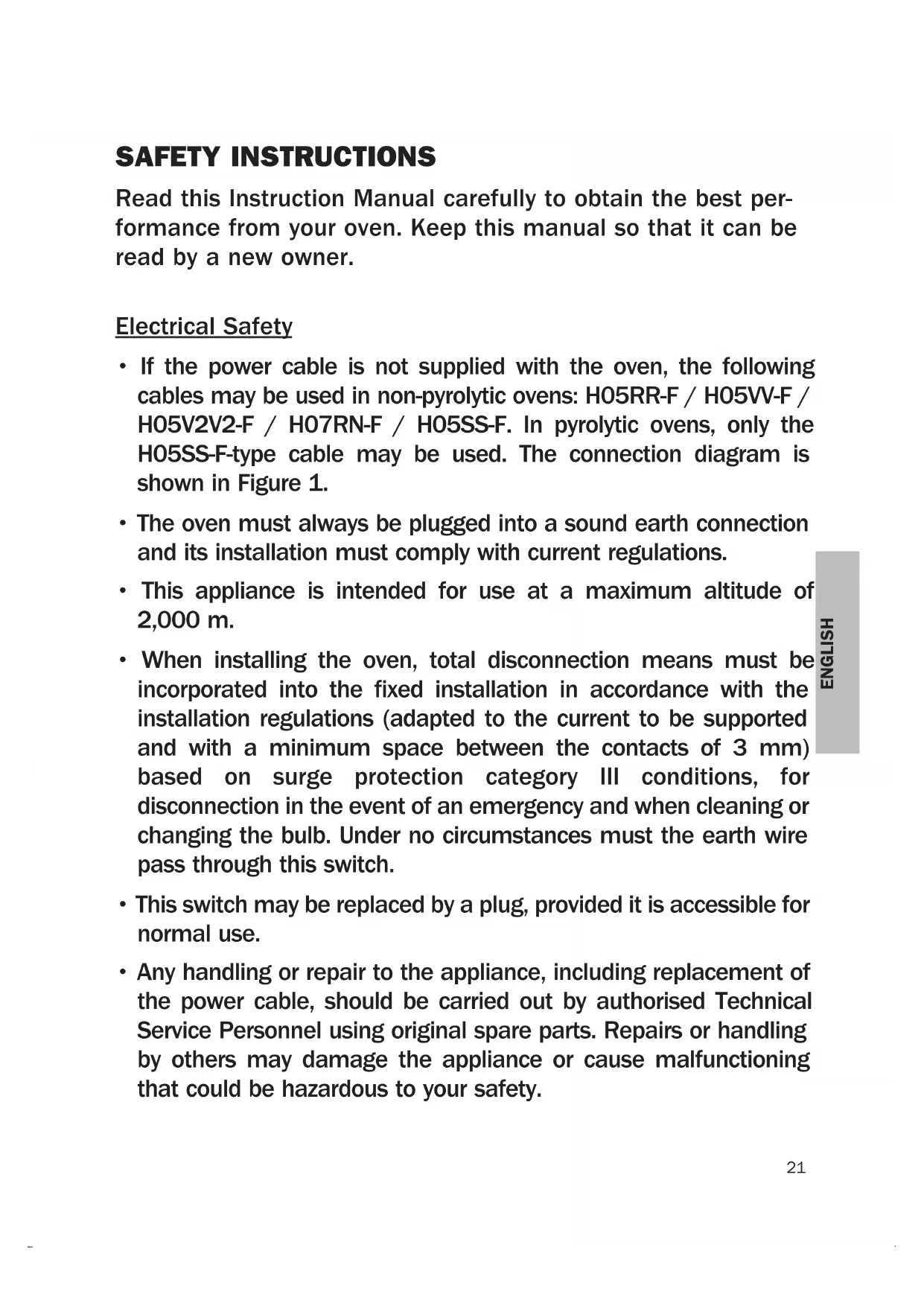 - This appliance is intended for use at a maximum altitude of 2,000 m.