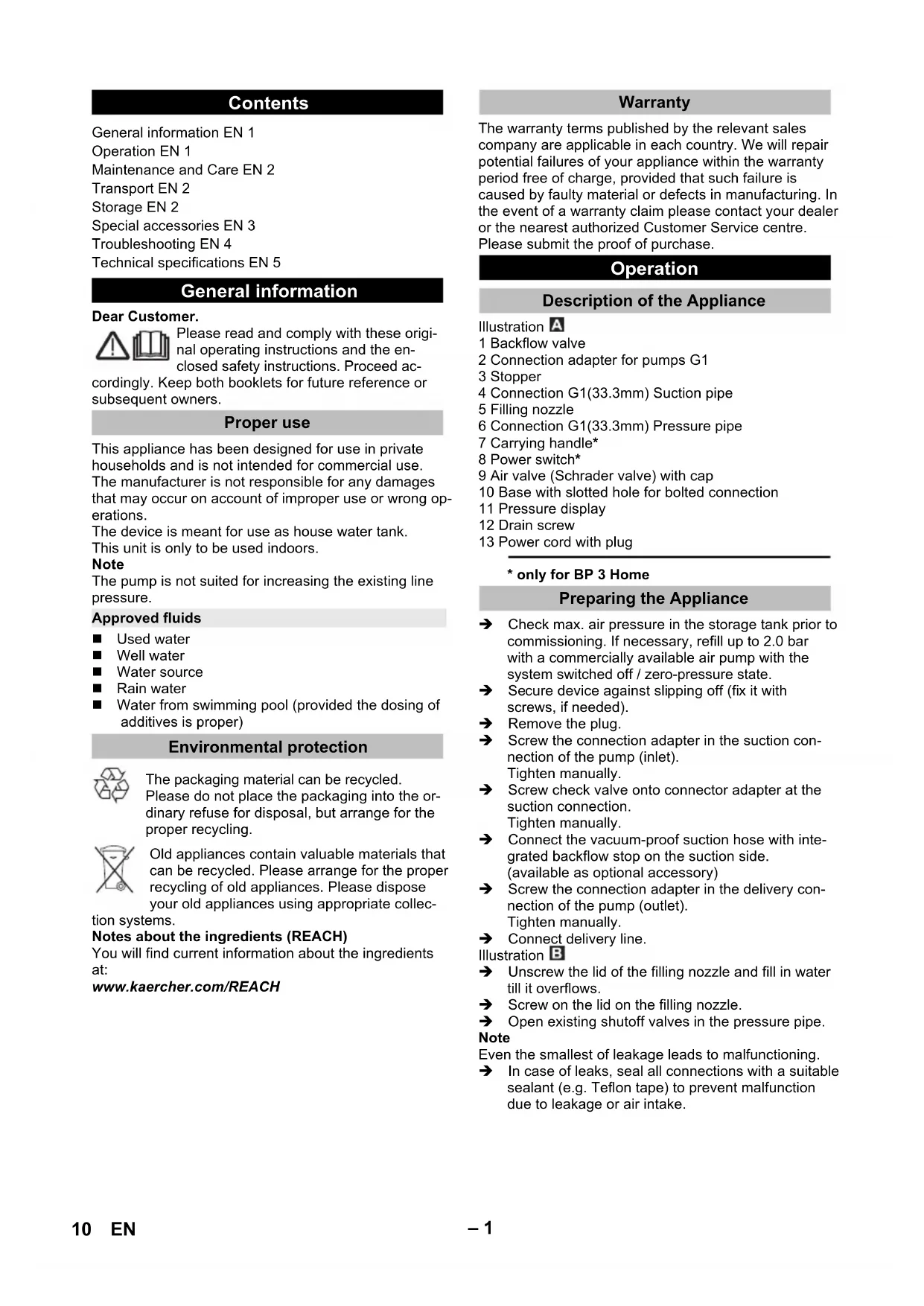 BP 3 Home - Pump Kärcher - Free user manual and instructions
