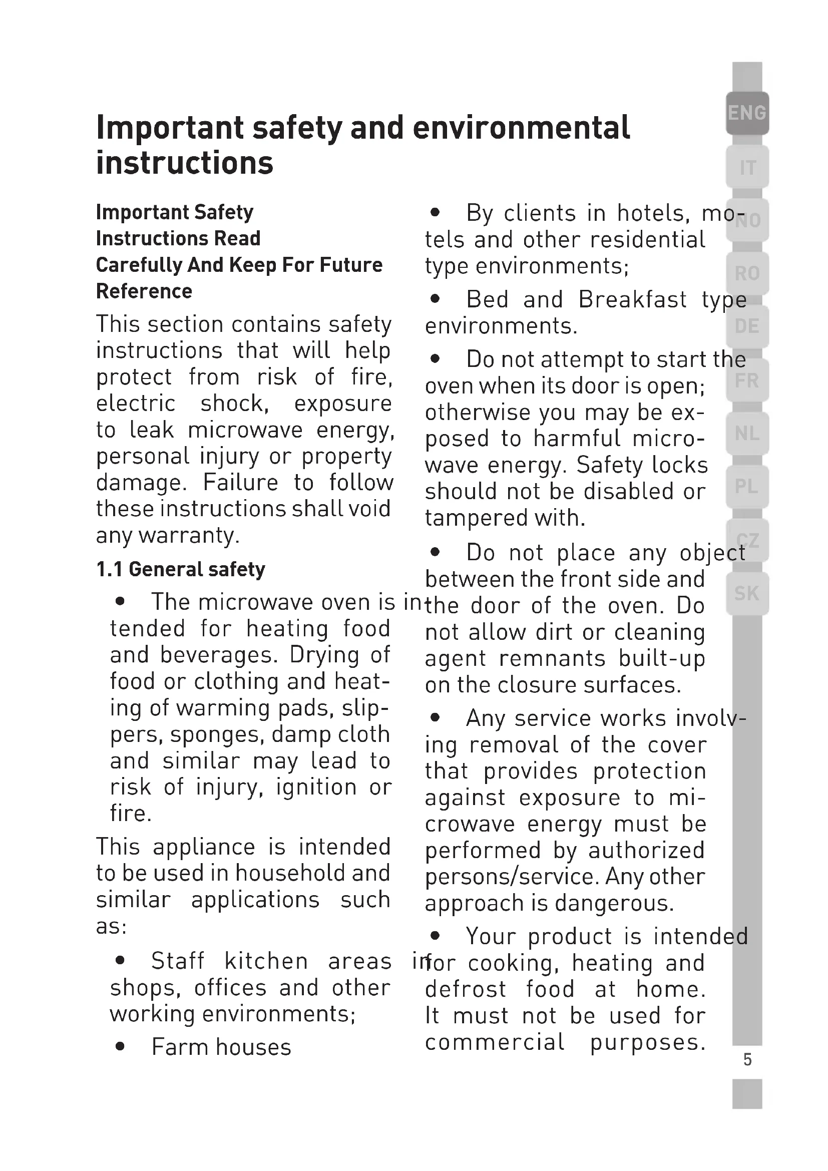 - Your product is intended for cooking, heating and defrost food at home. It must not be used for commercial purposes.6 Important safety and environmental instructions Manufacturer shall not be held liable for damages that have arisen from mis- use.