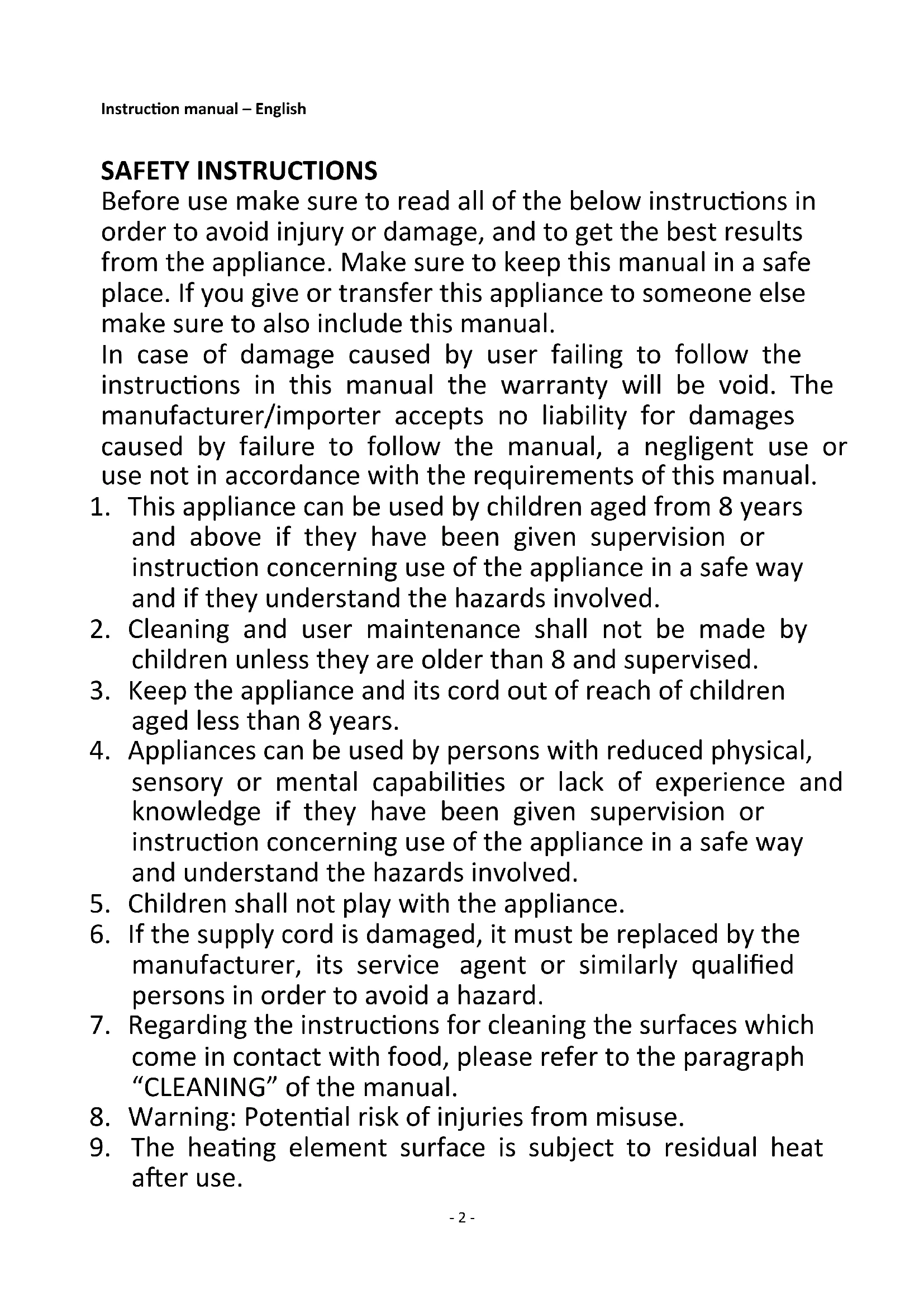 1. This appliance can be used by children aged from 8 years