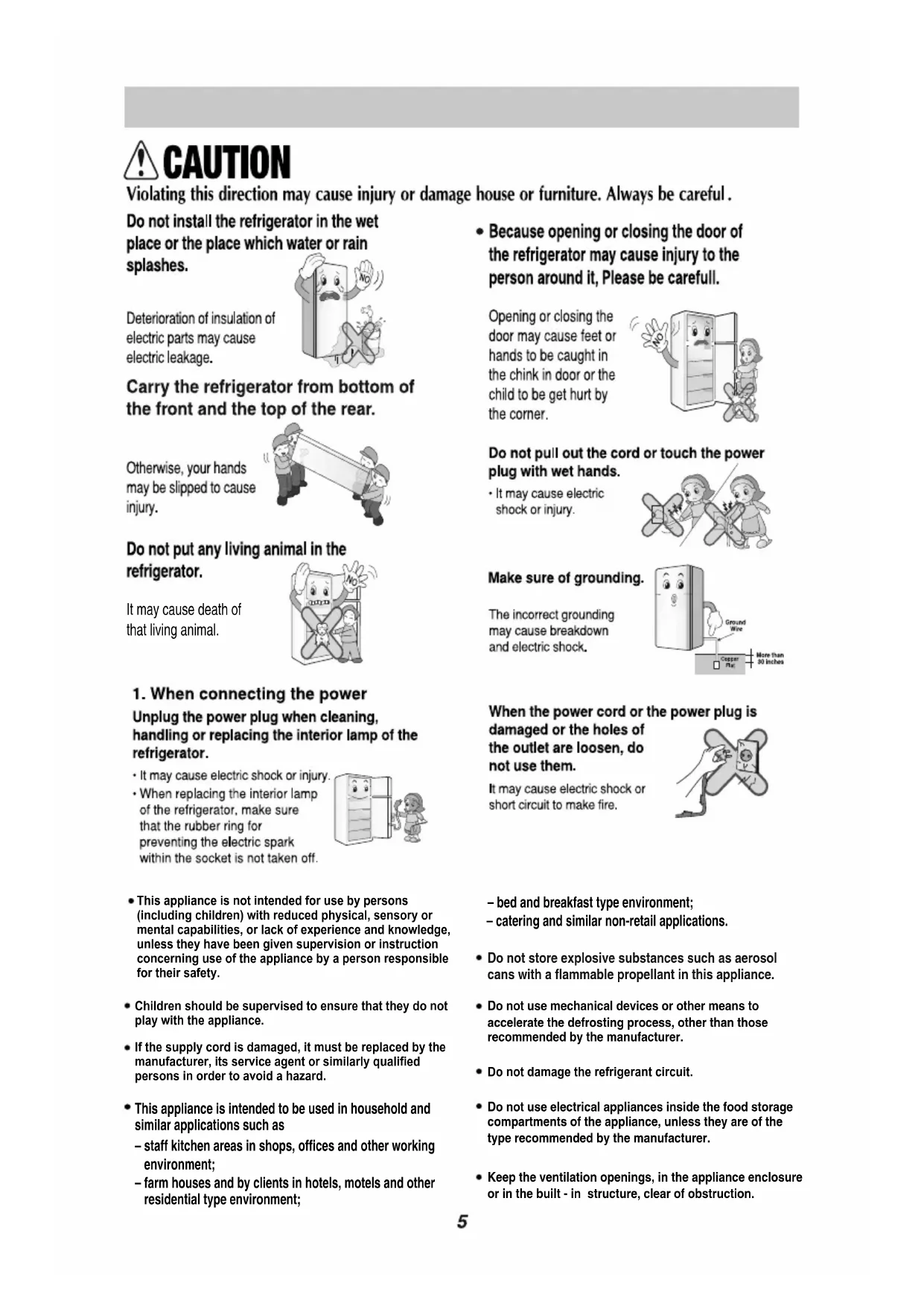REFRIGERATOR ENGLISHENGLISHFreezer Temperature Control Knob Double twist ice tray Ice Bank Freezer Shelf Deodorizer (Optional) Door Switch Refrigertor Temperature Control Knob Shelves Normal Lamp Temperature Controller (Meat/Veg) Tray Vegetable Humidity Controller Convertible Vegetable Box (Optional Cell, Fresh Crisper Door Basket Decor, Duct Door Cooling / GIDC (Optional) Egg Store Shelf Freezer Door BasketThis appliance is not intended for use by persons (including children) with reduced physical, sensory or mental capabilities, or lack of experience and knowledge, unless they have been given supervision or instruction concerning use of the appliance by a person responsible for their safety. Children should be supervised to ensure that they do not play with the appliance. If the supply cord is damaged, it must be replaced by the manufacturer, its service agent or similarly qualified persons in order to avoid a hazard. This appliance is intended to be used in household and similar applications such as – staff kitchen areas in shops, offices and other working environment; – farm houses and by clients in hotels, motels and other residential type environment; – bed and breakfast type environment; – catering and similar non-retail applications. Do not use mechanical devices or other means to accelerate the defrosting process, other than those recommended by the manufacturer. Do not damage the refrigerant circuit. Do not use electrical appliances inside the food storage compartments of the appliance, unless they are of the type recommended by the manufacturer. Keep the ventilation openings, in the appliance enclosure or in the built - in structure, clear of obstruction. Do not store explosive substances such as aerosol cans with a flammable propellant in this appliance. It may cause death of that living animal.Do not keep any other electrical appliance on top and inside of refrigerator such as TV, Cooler, Temple, Decoration Lighting, Harmful Chemicals, Cloth Top etc. It may cause explosion or fire.It may cause explosion or fire.Deodorizer (Optional) (Optional)(Optional) (Optional) When the door is opened, the warmer air can’t influence in the fresh zone. So you can store food more fresh in it.Refrigerator should be located properly in ventilated area. Levelling of refrigerator should be done with front leg. Refrigerator should be levelled with front to back inclination for base. Front Leg Do not install refrigerator where the front surface area is higher than back surface area by 2 deg.