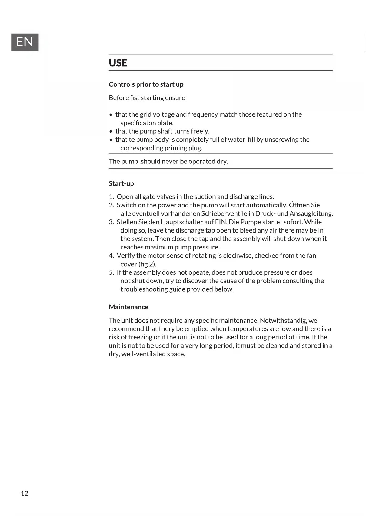 - that te pump body is completely full of water-ll by unscrewing the corresponding priming plug. The pump .should never be operated dry. Start-up