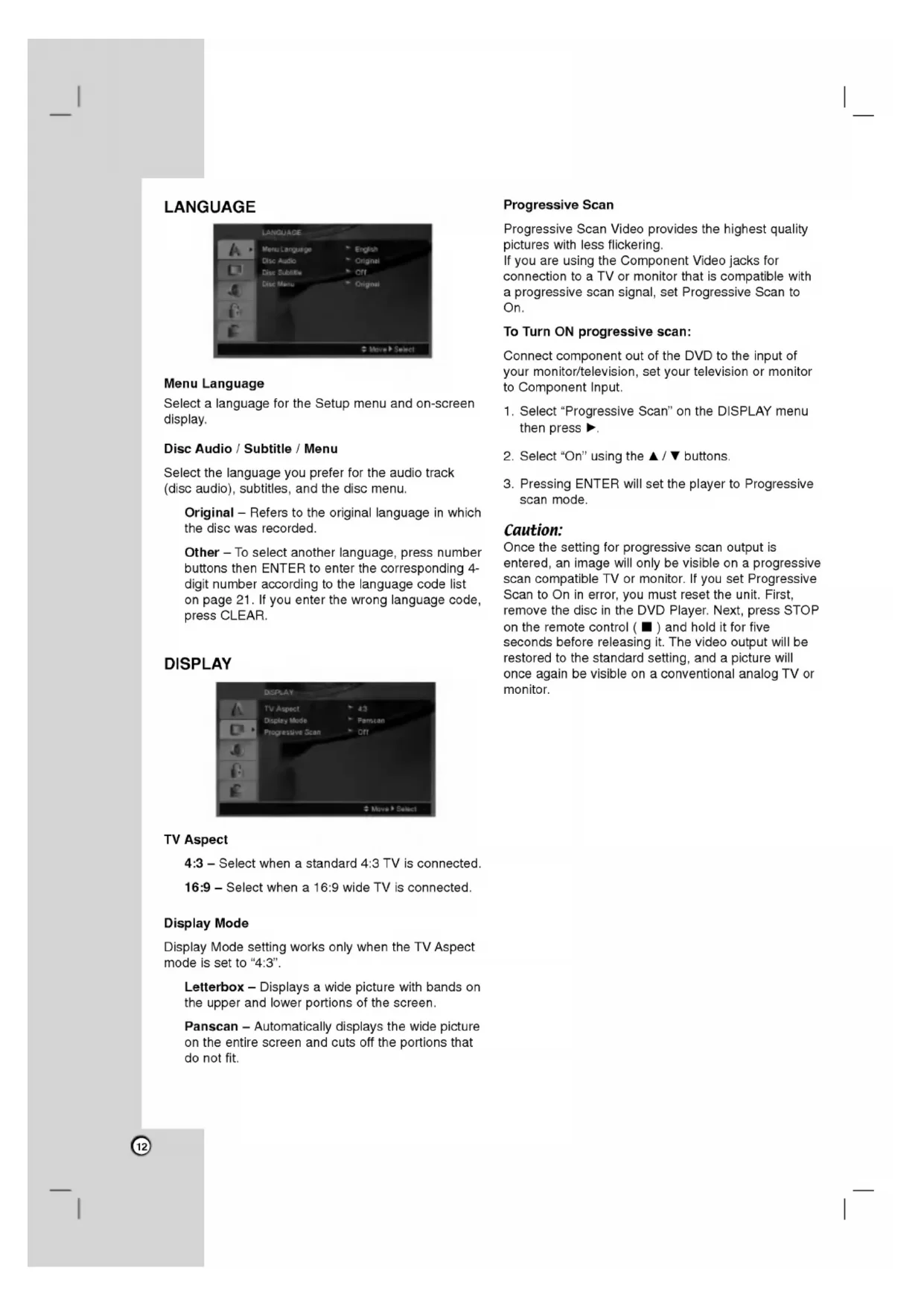 displayed for five minutes, the DVD Player automatically turns itself off.17 Playing Audio