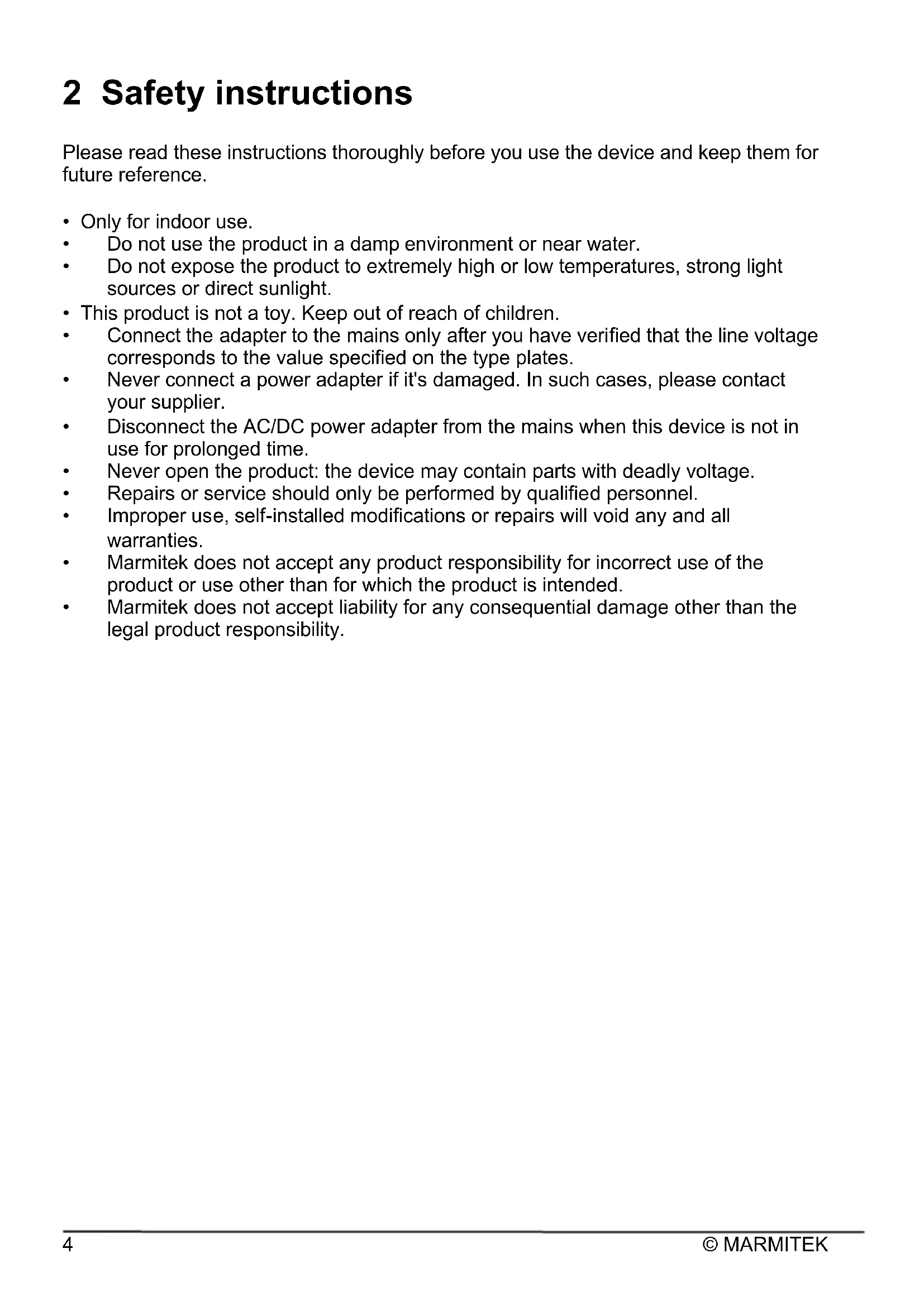 - Marmitek does not accept any product responsibility for incorrect use of the product or use other than for which the product is intended.