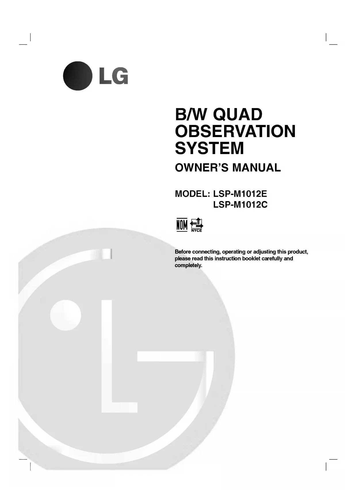 B/W QUAD OBSERVATION SYSTEM OWNER'S MANUAL MODEL: LSP-M1012E LSP-M1012C Beforeconnecting,operatingoradjustingthisproduct,pleasereadthisinstructionbookletcarefullyandcompletely.2 CAUTION: