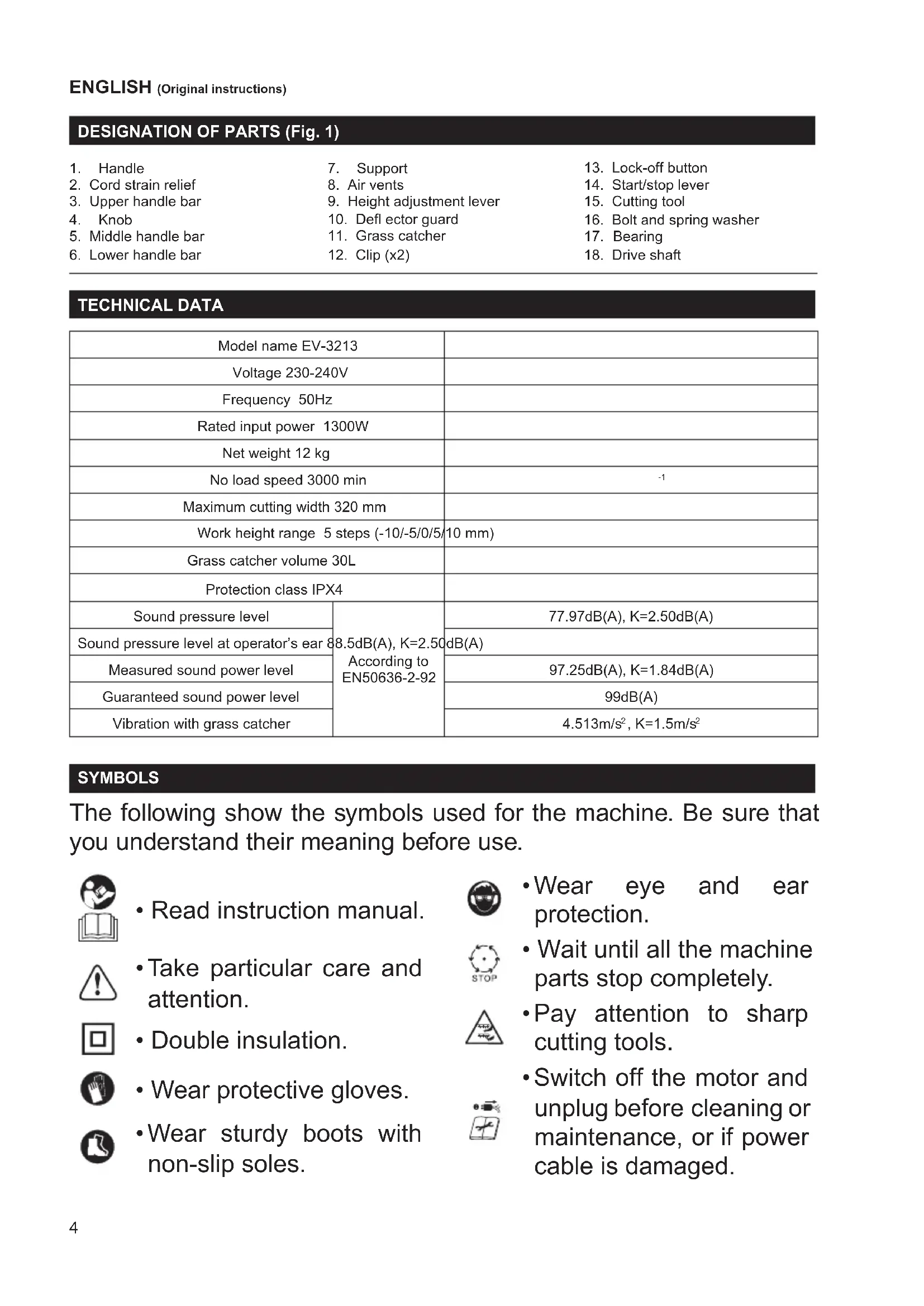 Download the instructions for your Scarifier in PDF format for free! Find your manual EV3213 - DOLMAR and take your electronic device back in hand. On this page are published all the documents necessary for the use of your device. EV3213 by DOLMAR.