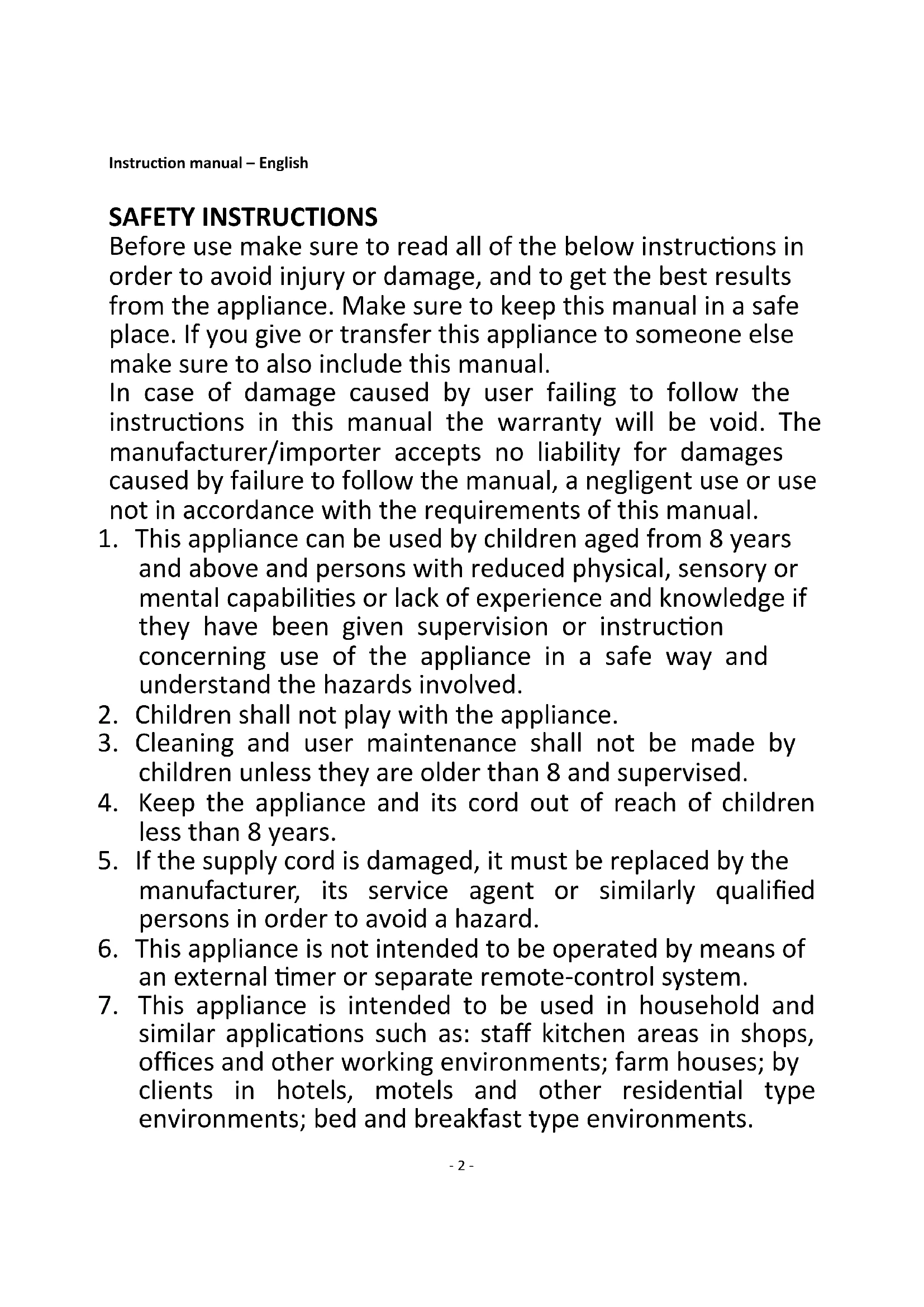2. Children shall not play with the appliance.