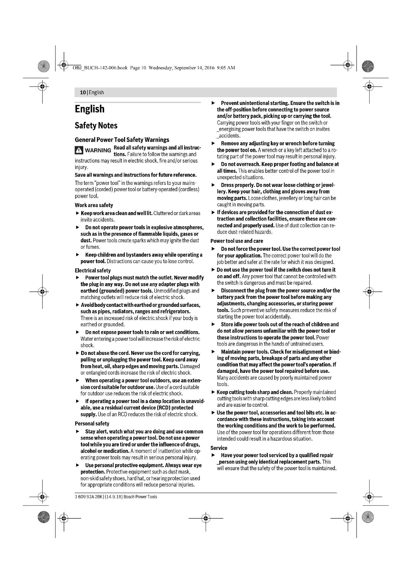 OBJ_BUCH-142-006.book Page 4 Monday, September 12, 2016 3:55 PM5 | 1 609 92A 2BK | (12.9.16) Bosch Power Tools