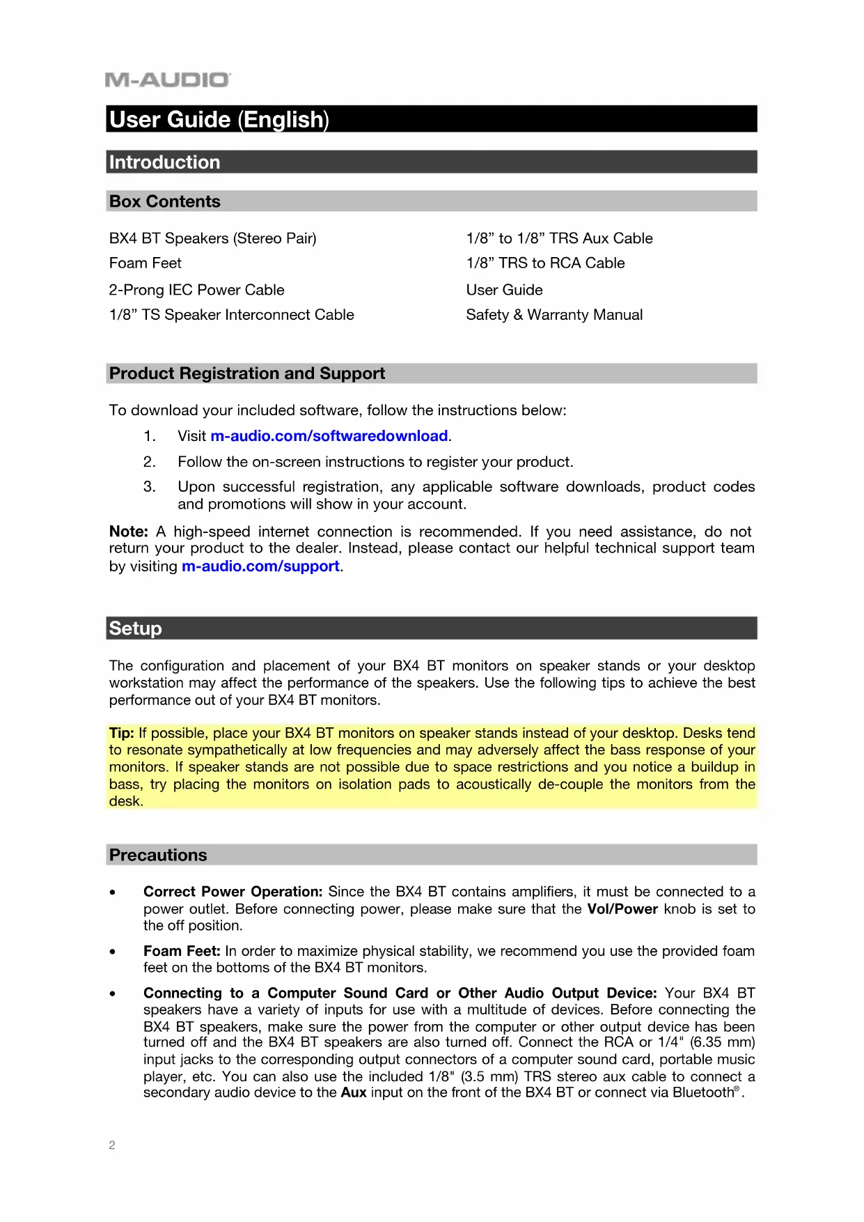 and promotions will show in your account. Note: A high-speed internet connection is recommended. If you need assistance, do not return your product to the dealer. Instead, please contact our helpful technical support team by visiting m-audio.com/support.