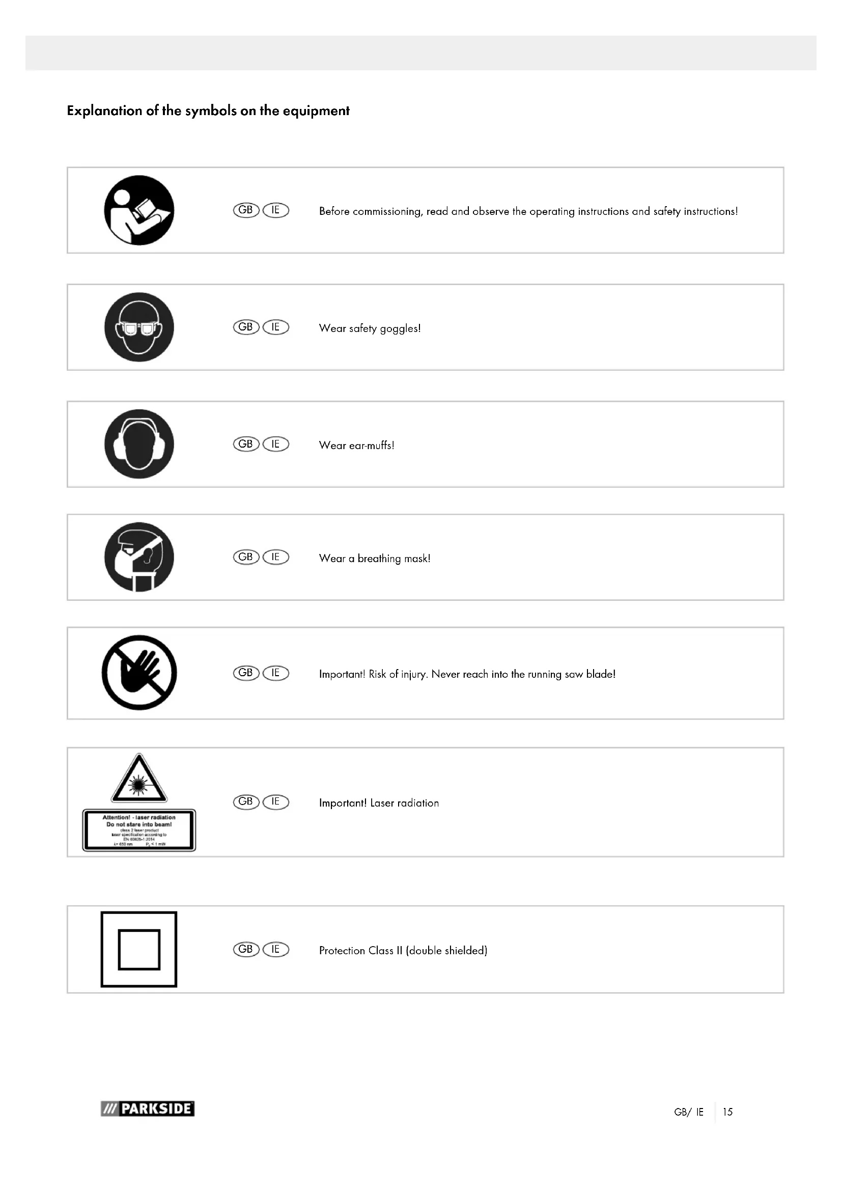 - Important! The work to change and align the saw blade (6) must be carried out correctly.23 GB/ IE Please provide the following information in the event of any enquiries: