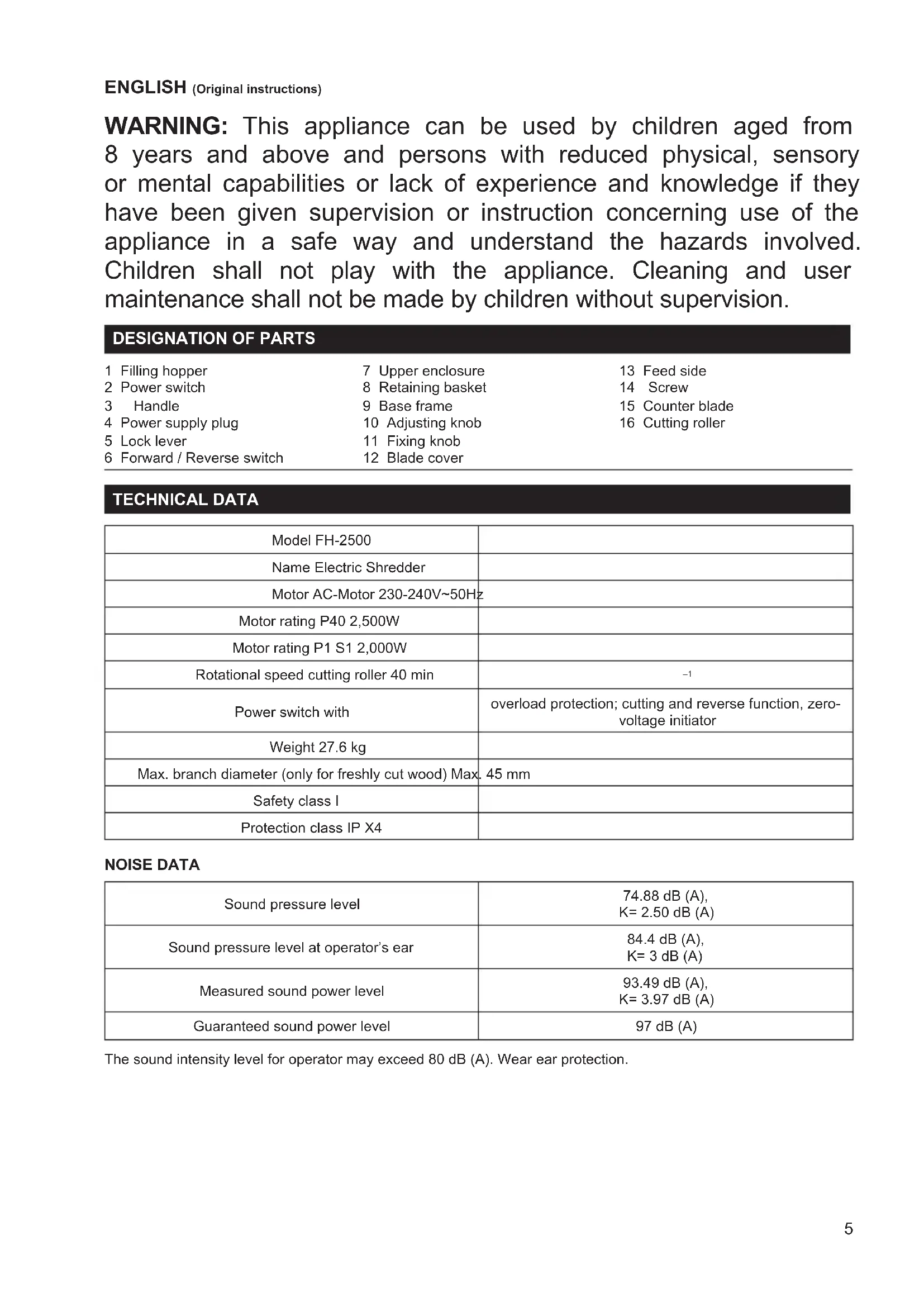 - The electric shredder is not intended for use by persons with reduced physical, sensory or mental capabilities, or lack of experience and knowledge. Young children should be supervised to ensure that they do not play with the machine. Do not allow children to operate this equipment.