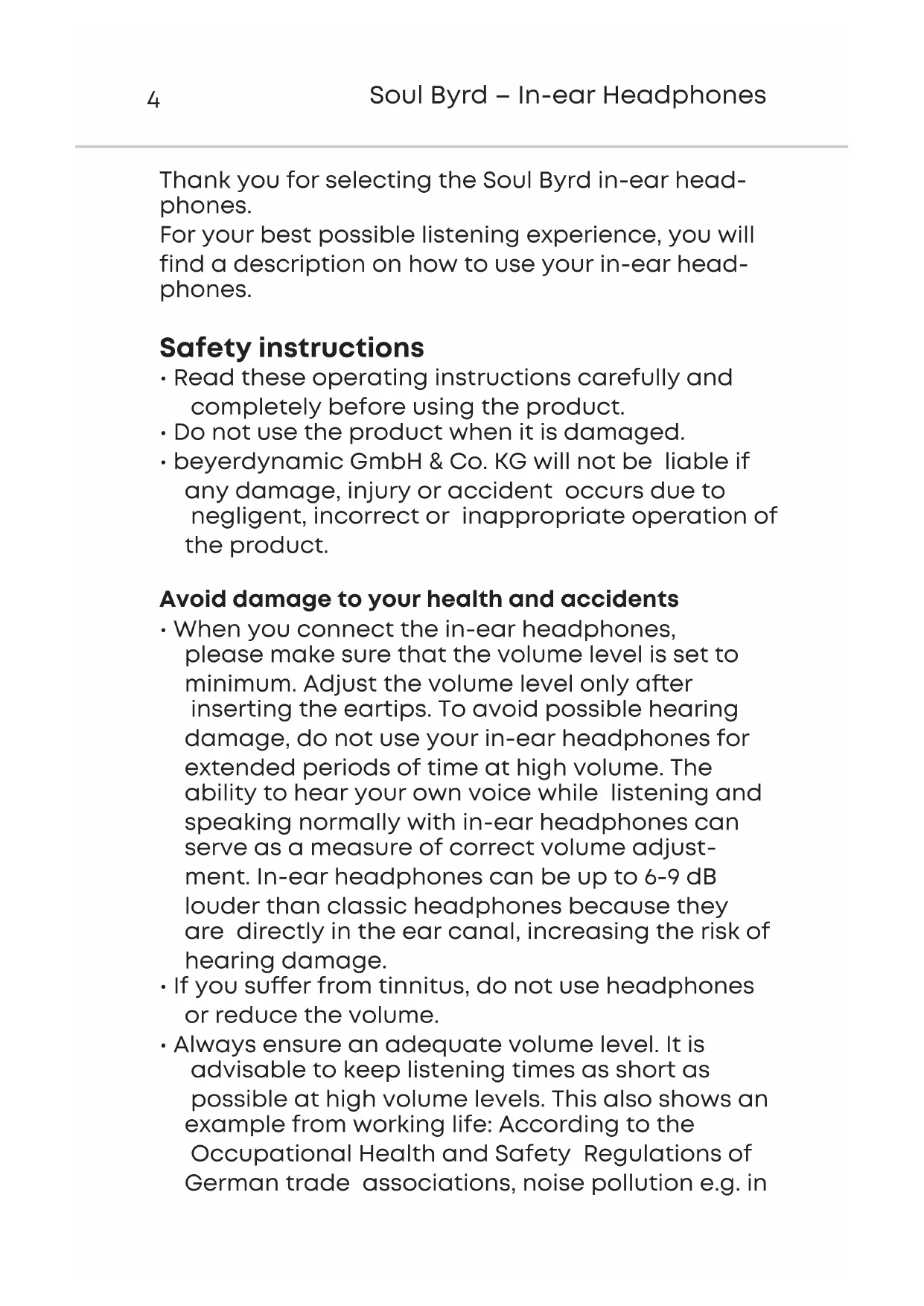 - Do not use the product for any application which is not describe in this product information. beyerdynamic is not liable for improper use of the product and its accessories.english Soul Byrd – In-ear Headphones