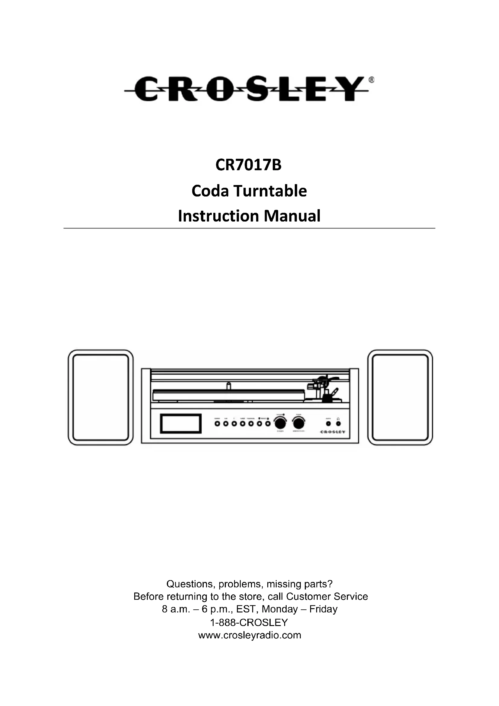 Coda CR7017B - Turntable Crosley - Free user manual and instructions