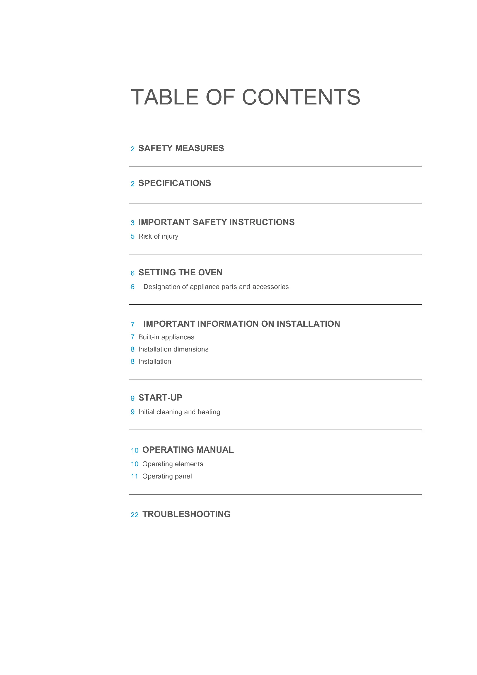 7 Built-in appliances 8 Installation dimensions 8 Installation