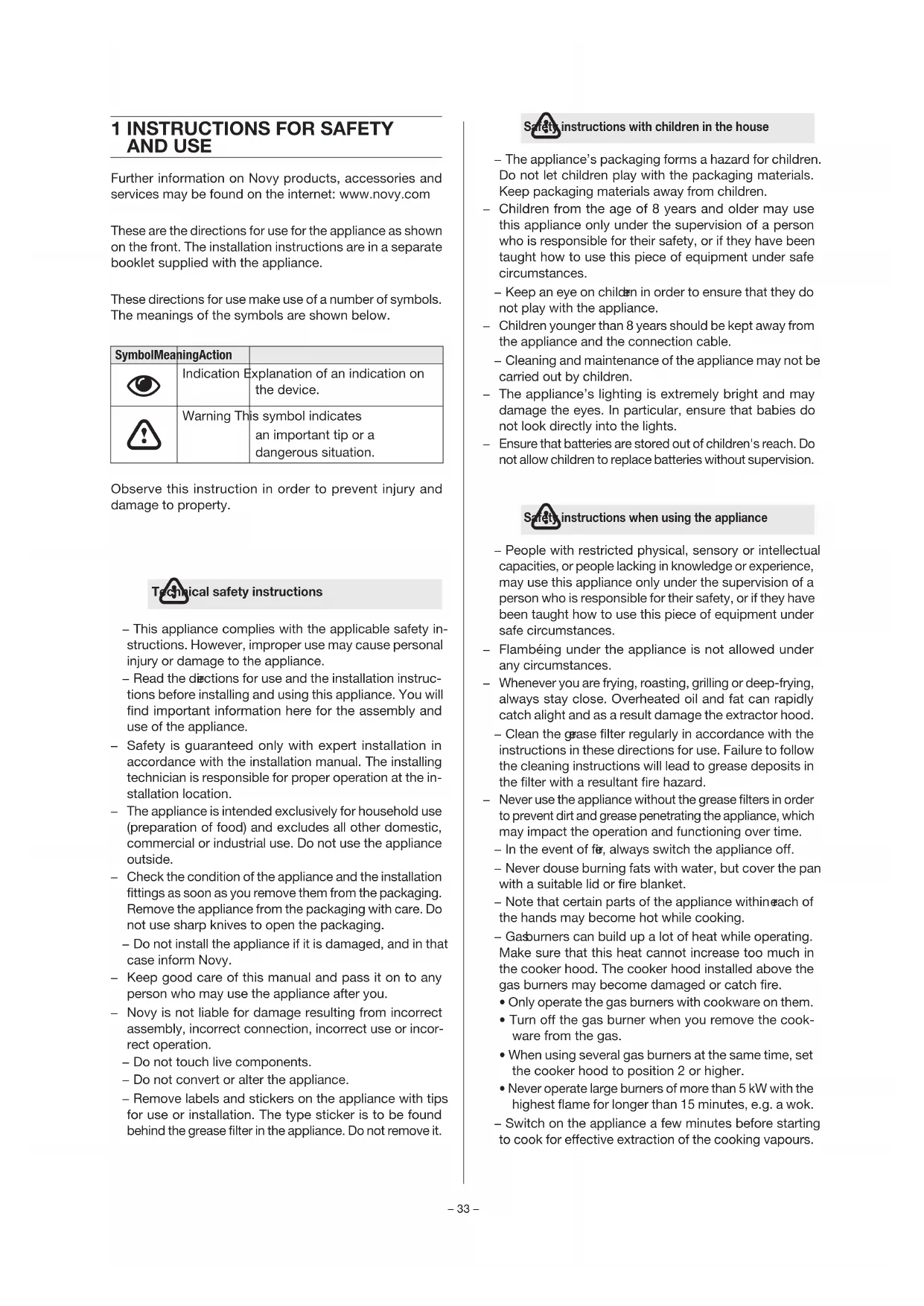 1 INSTRUCTIONS FOR SAFETY AND USE 33