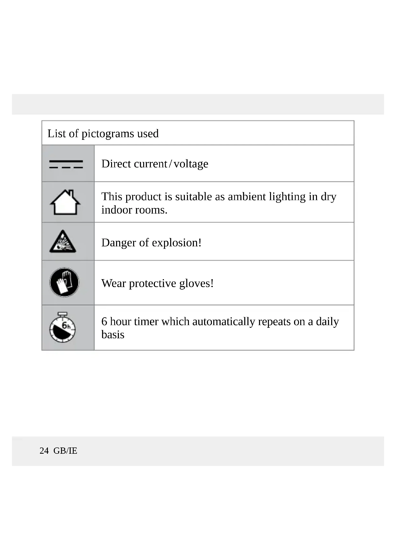 to the TIMER position to switch on the timer function. The product´s lights up continuously for 6 hours and then switches itself off for 18 hours. The product will then switch on again for 6 hours at the allocated time and then switch off for 18 hours. Note: The timer will restart counting from light up the product every time, by slide the switch