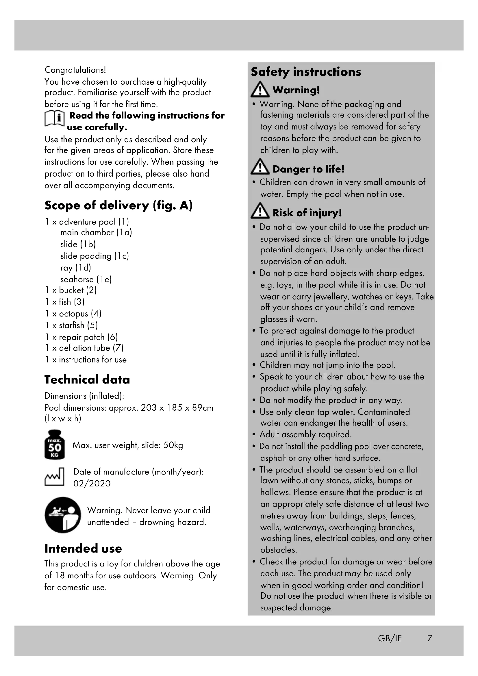 Download the instructions for your Inflatable pool in PDF format for free! Find your manual IAN 324798 - Playtive and take your electronic device back in hand. On this page are published all the documents necessary for the use of your device. IAN 324798 by Playtive.