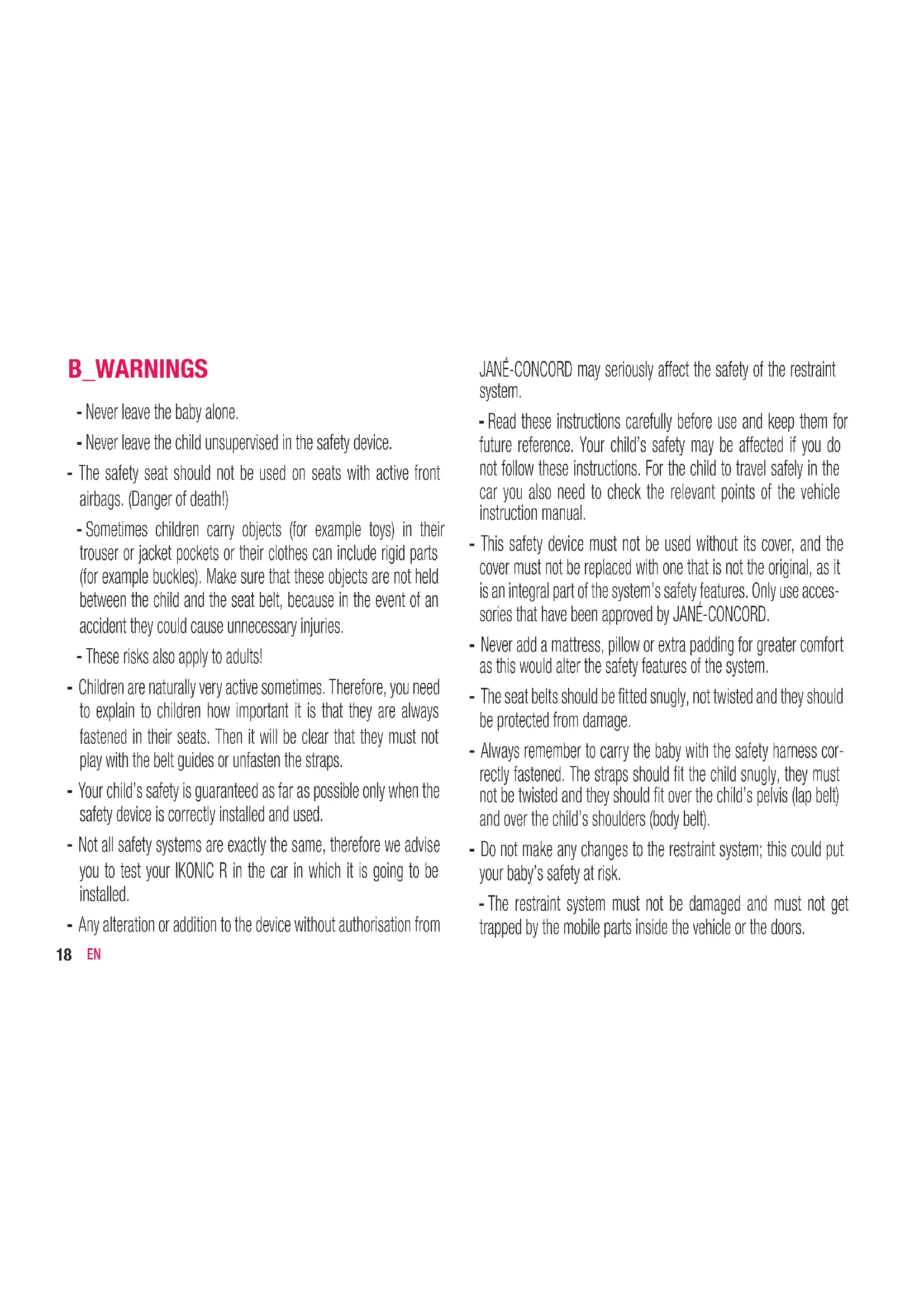 JANE-CONCORD recommends that you replace your IKONIC R safety seat with a new one if it has been subjected to violent stress in an accident.